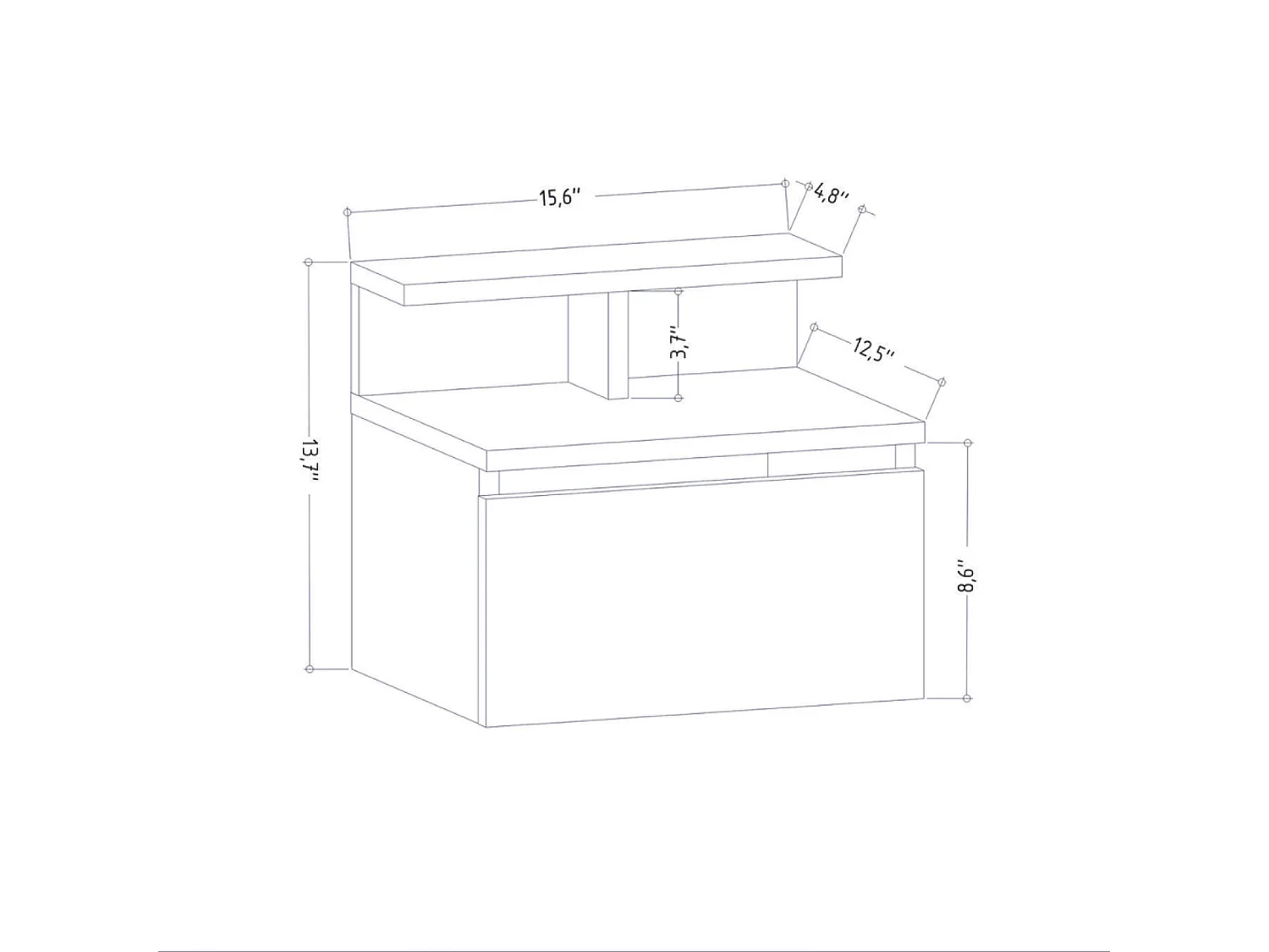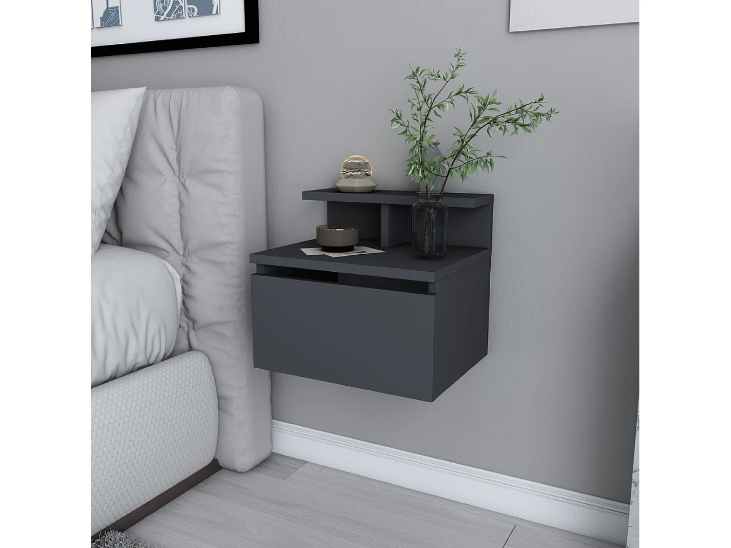Wandnachtkastje antraciet met lade en plank VISBY