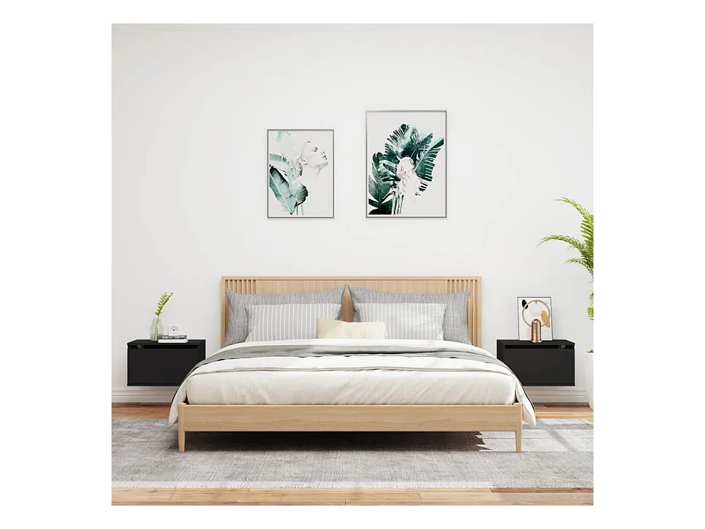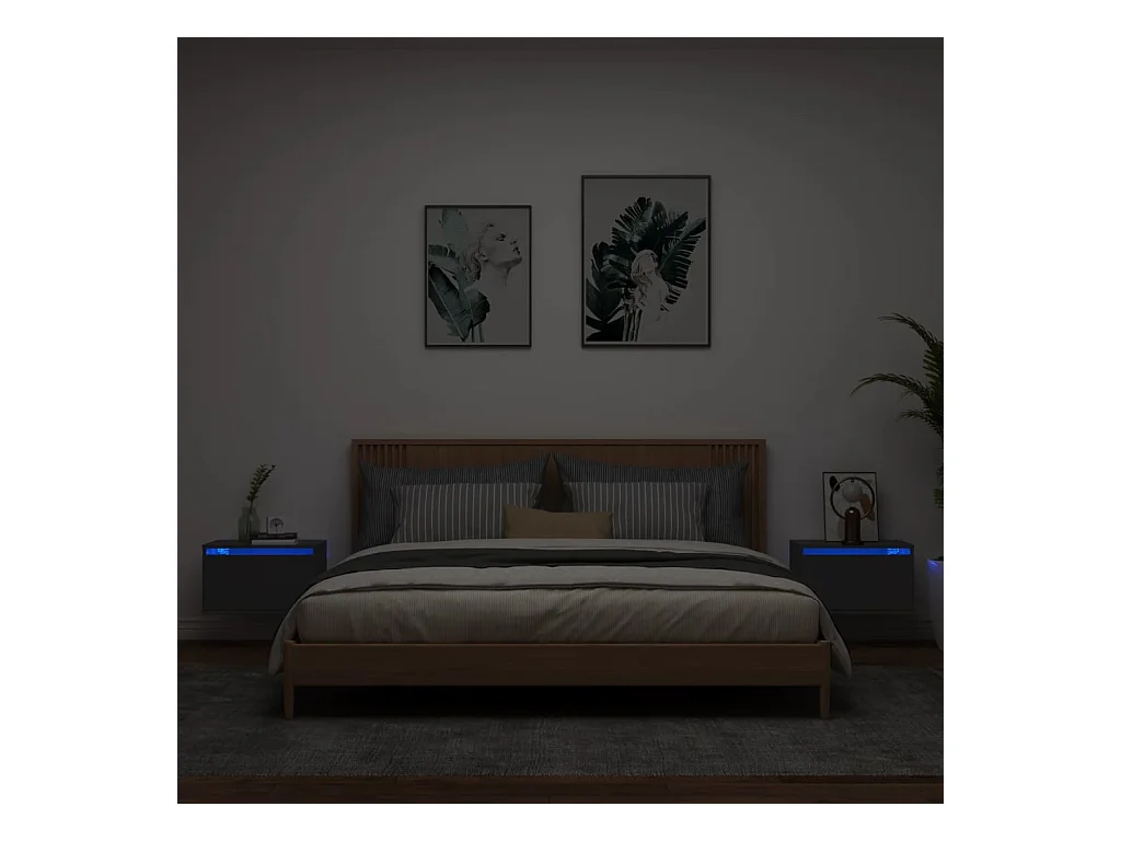 Wandnachtkastjes met LED-verlichting 2 stuks zwart