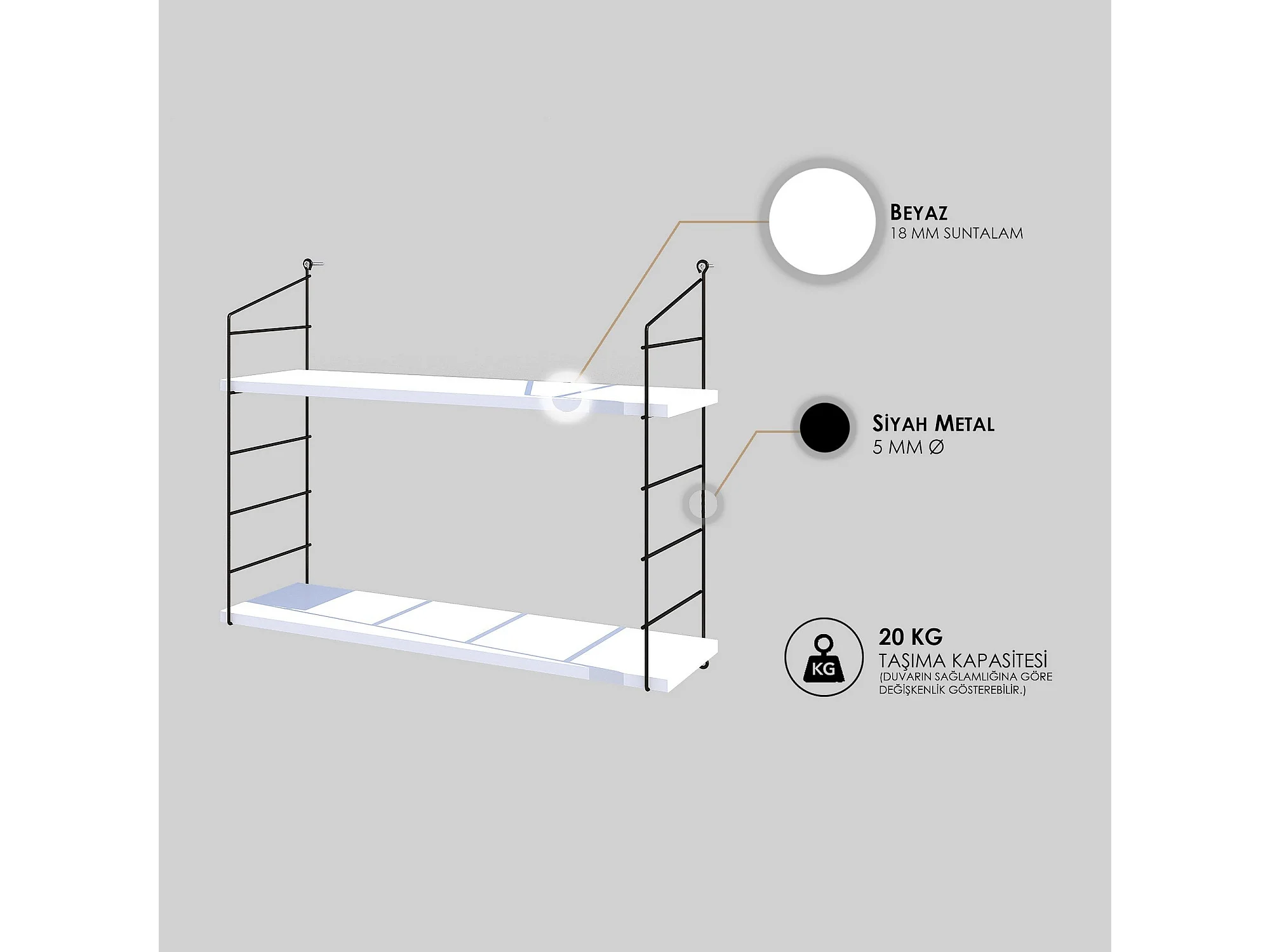 Wandplank – 180 cm x 69 cm x 20 cm – Zwart en wit – Spaanplaat