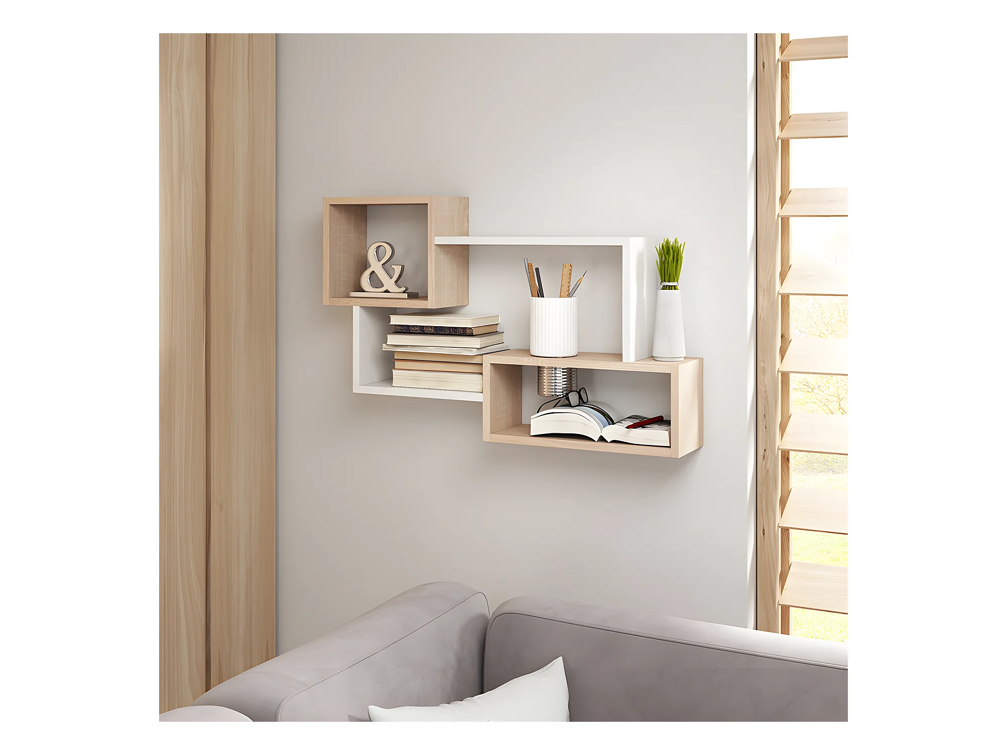 Wandplank / Asymmetrische plank 3 vakken - sonoma eiken / wit - KASSI