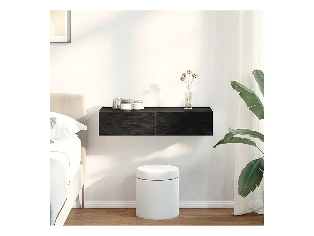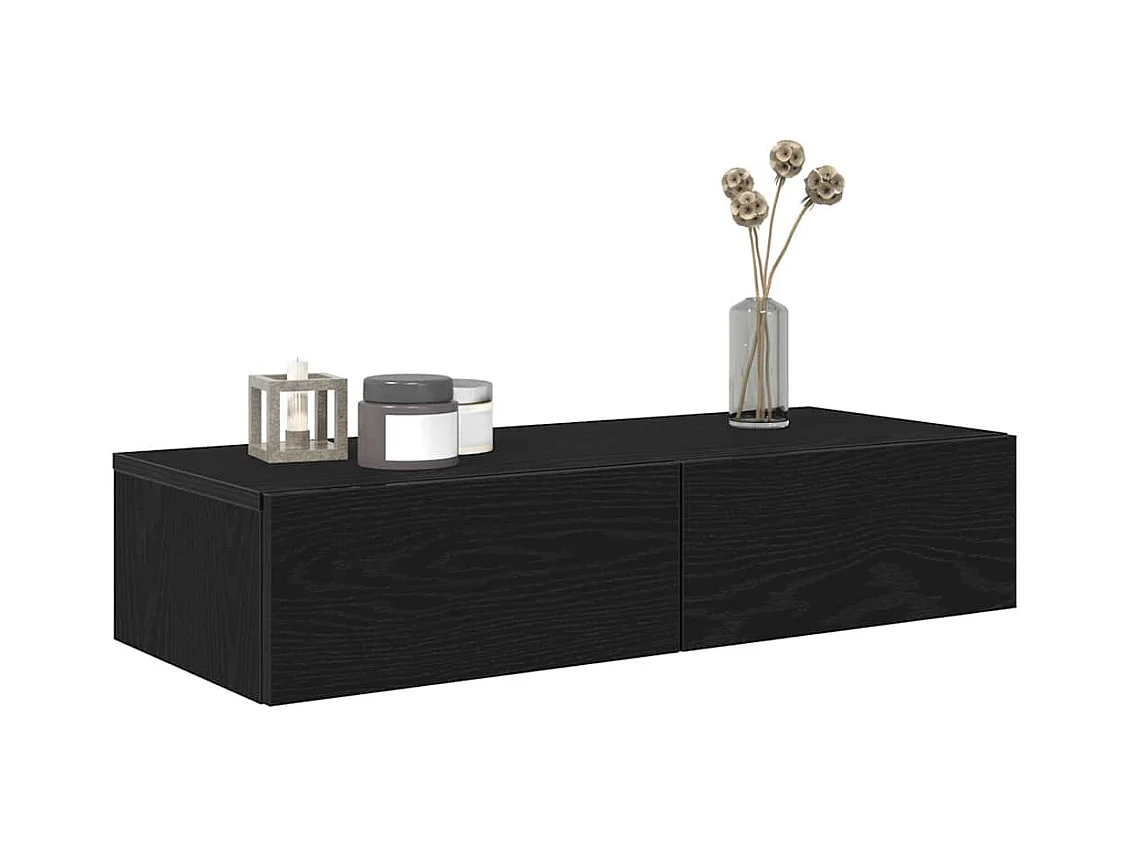Wandplank met lades zwart 80x33x17 cm bewerkt hout