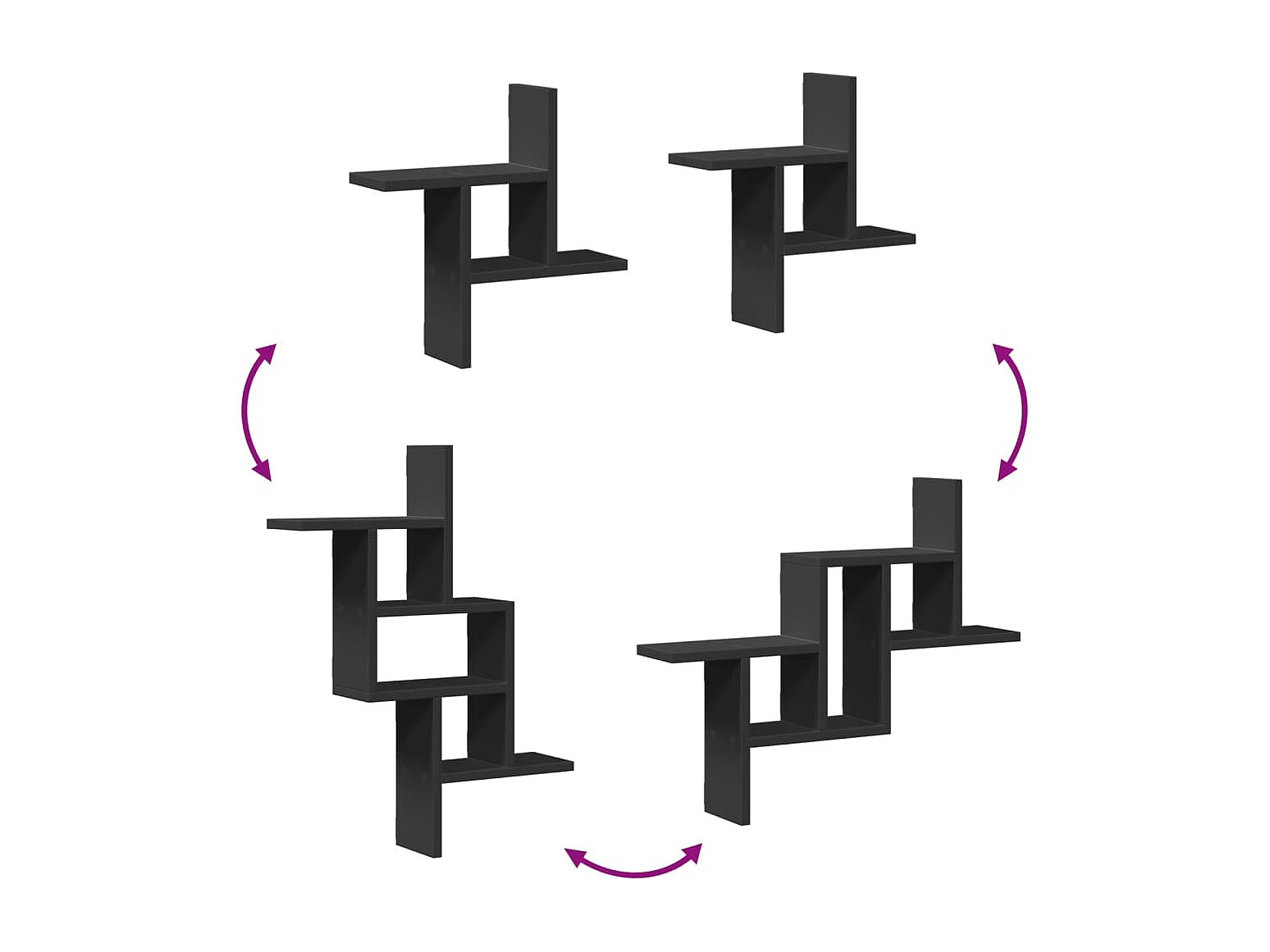 Wandplanken 2 stuks zwart 38x12x38 cm bewerkt hout