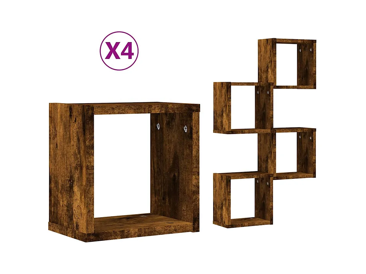 Kubus wandplanken 4 stuks Gerookt eiken 80x15x26,5 cm