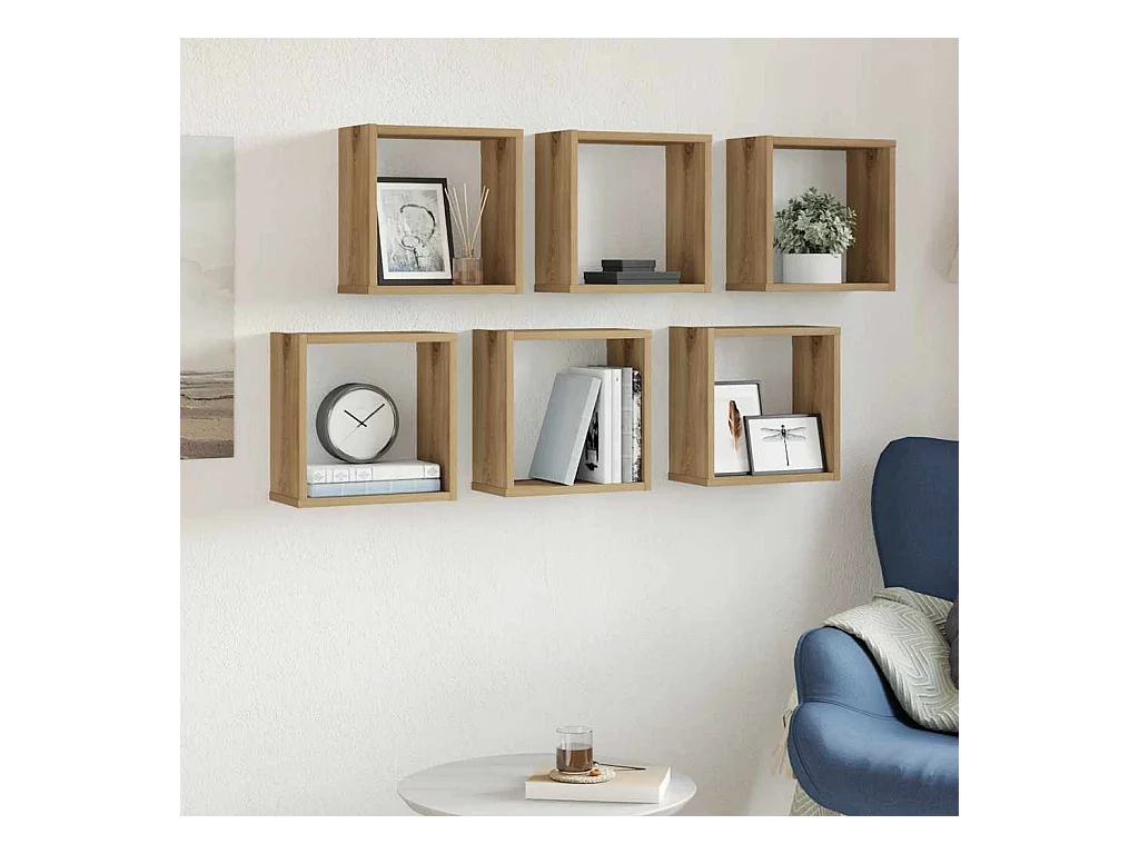 Kubus wandplanken 6 stuks bruin eiken 30x15x30cm