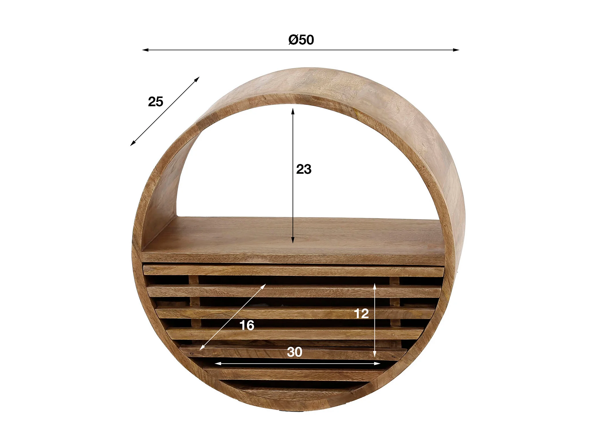 Wandschap Tweak Ø50 - Massief Mango Zandkleur