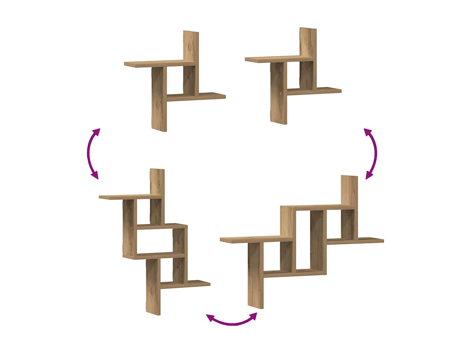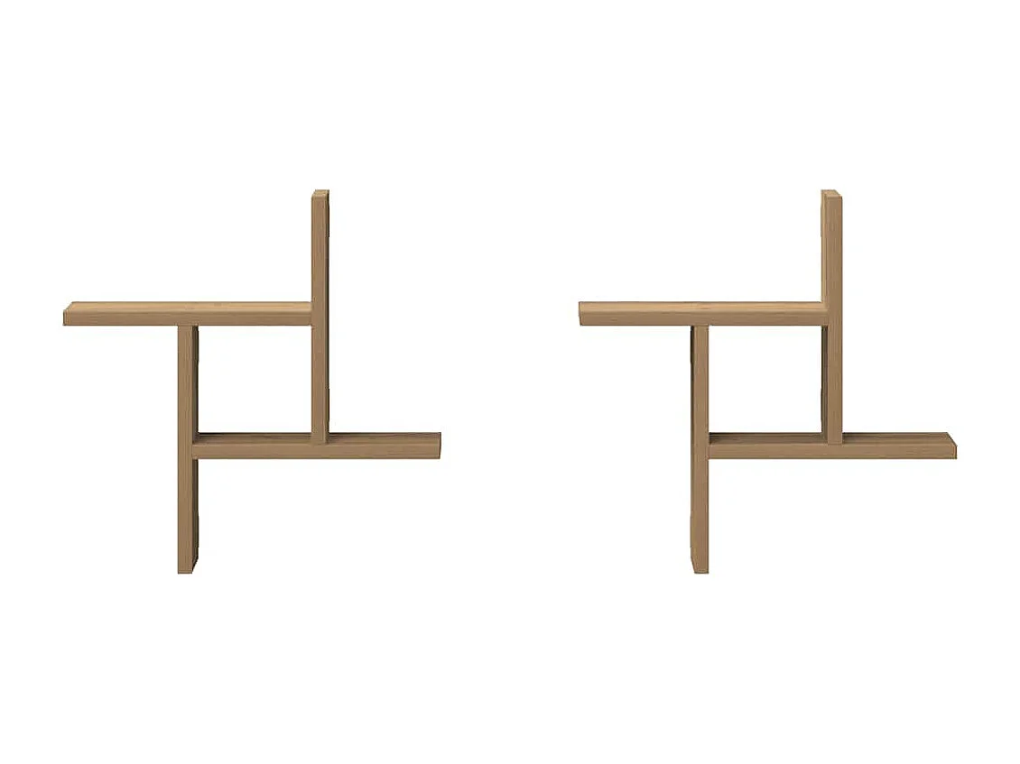 Wandschappen 2 st 38x12x38 cm bewerkt hout bruin eikenkleurig