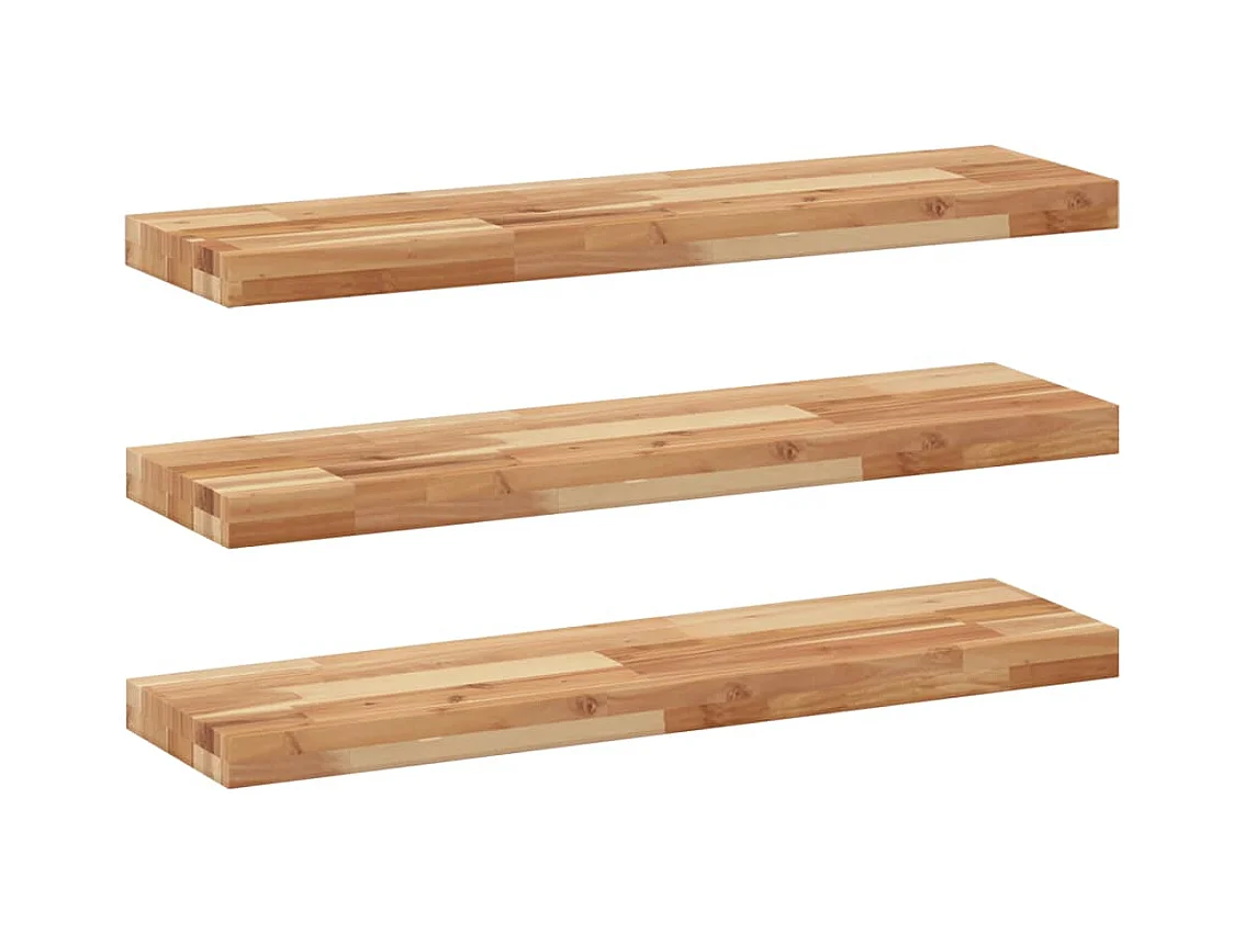 Wandschappen 3 st zwevend olieafwerking 120x20x4 cm acaciahout