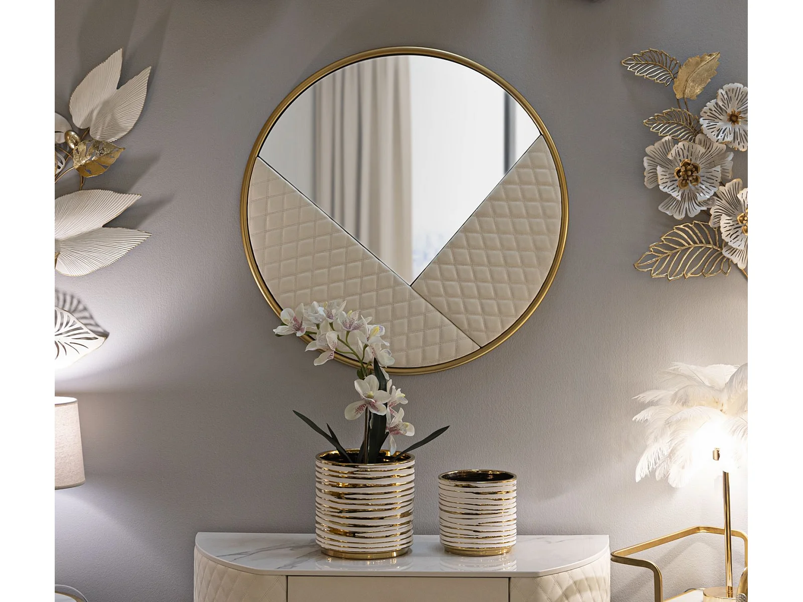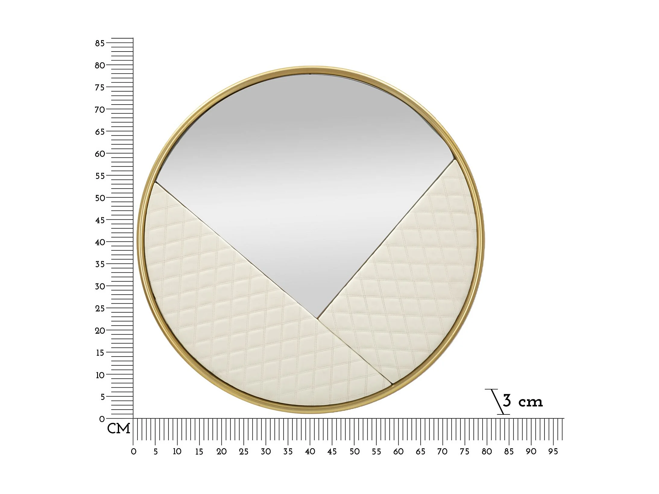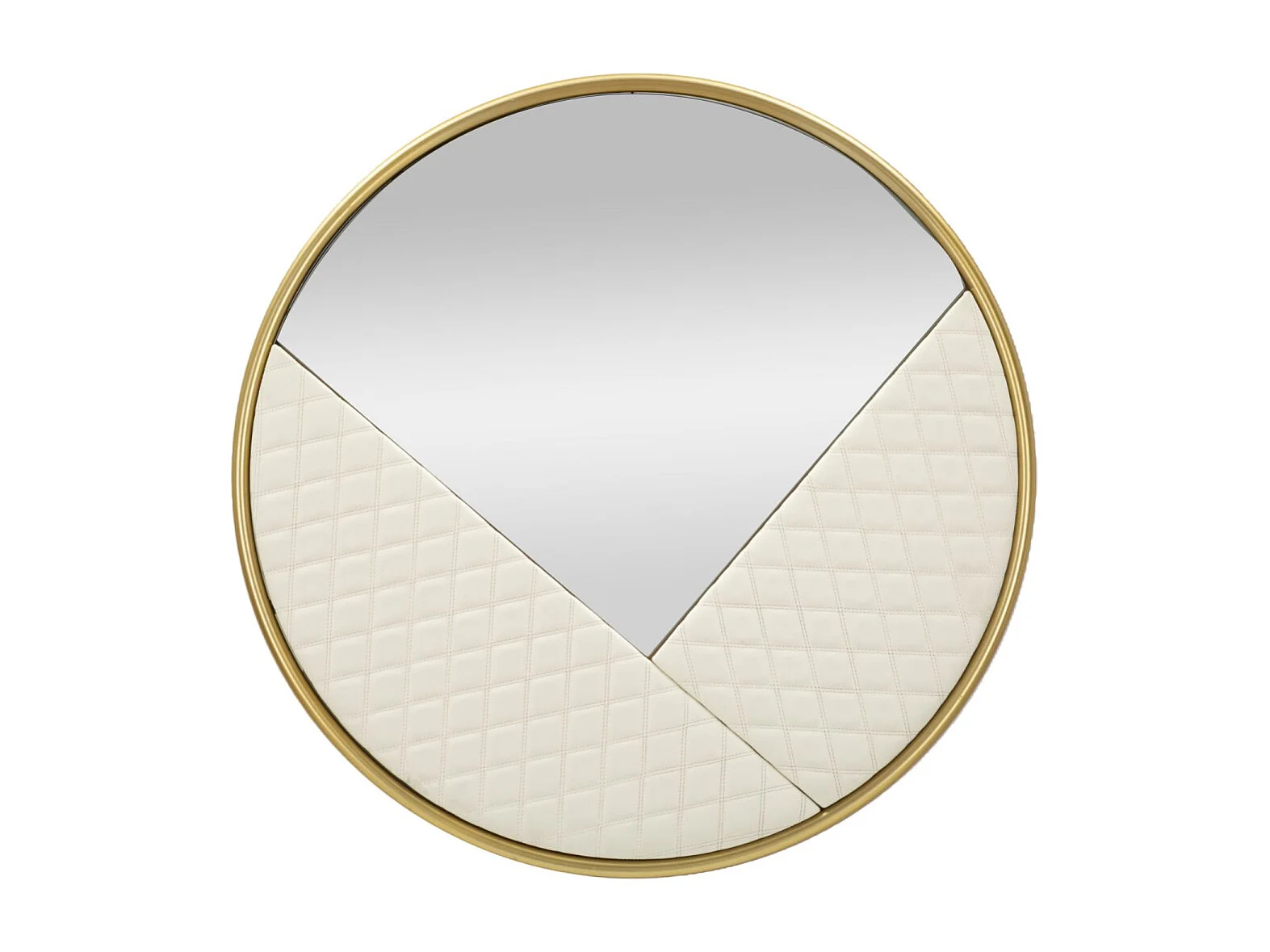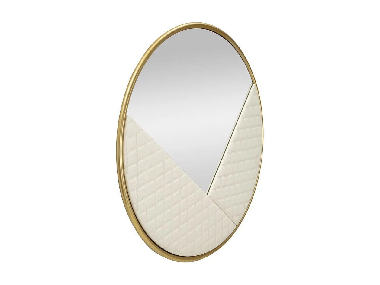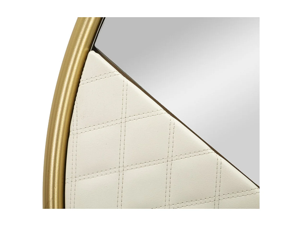 Wandspiegel van hout en gewatteerd ecoleer, crème, Ø80x3 cm.