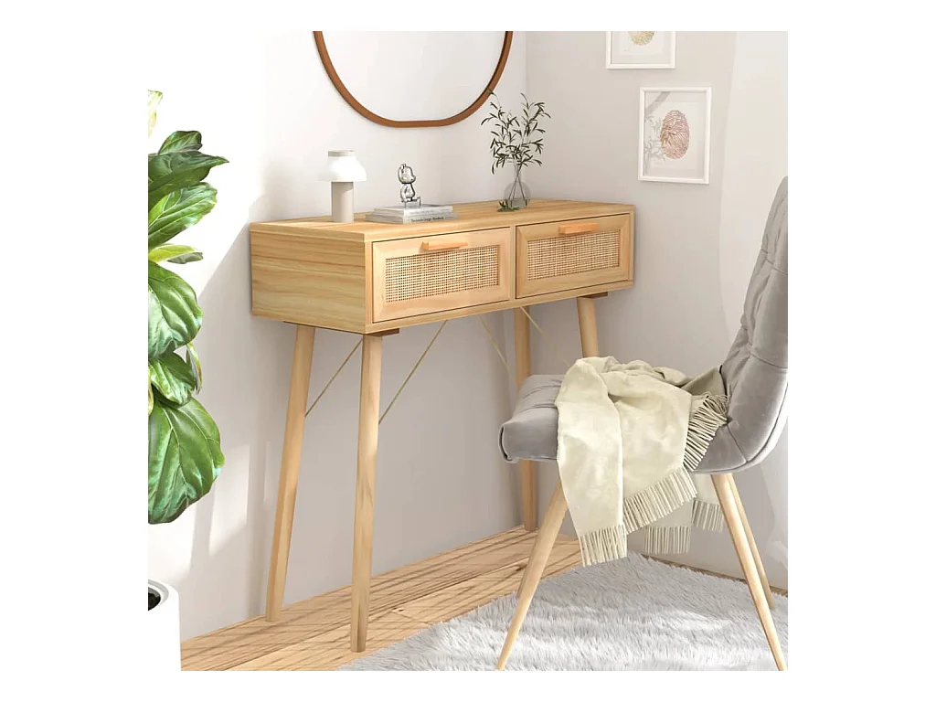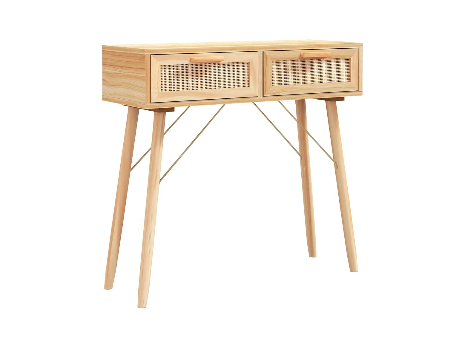 Wandtafel 80x30x75 cm massief grenenhout en natuurlijk rattan