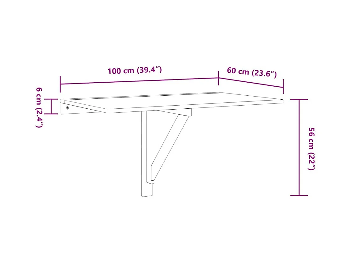 Wandtafel inklapbaar 100x60x56 cm bewerkt hout bruineiken
