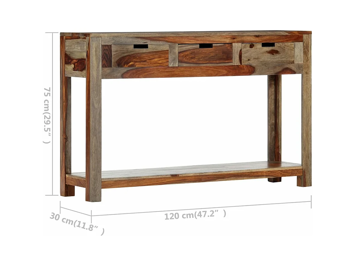 Wandtafel met 3 lades 120x30x75 cm massief acaciahout
