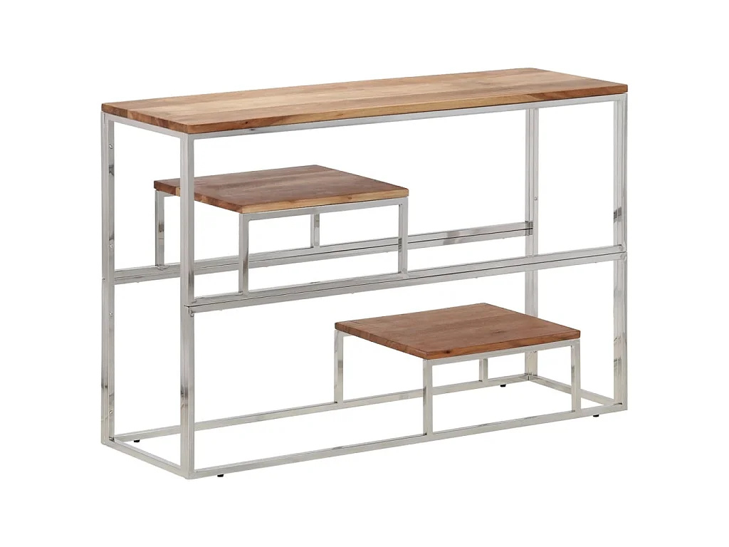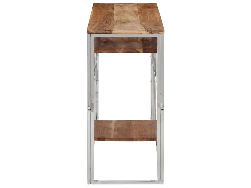Wandtafel roestvrij staal en massief acaciahout zilverkleurig