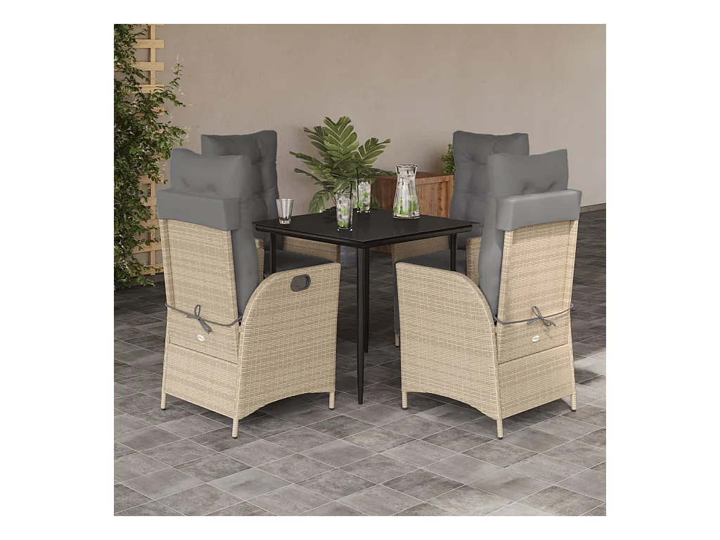 Warner Robins 5-delige Tuinset met kussens poly rattan gemengd beige