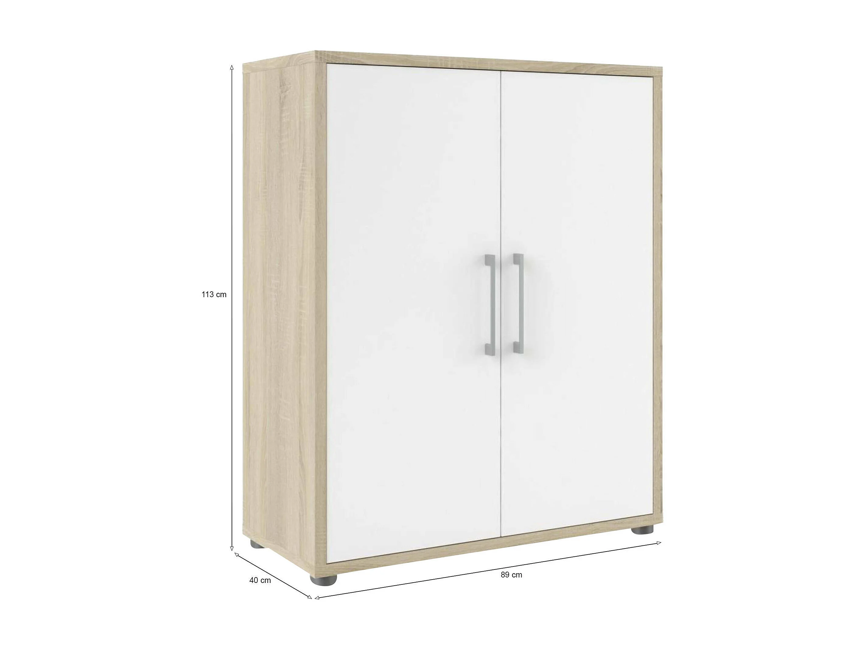 Warszawa dressoir, Woonkamerbuffet, Woonkamerdressoir, Keukenkast, 89x40 h113 cm, Eiken en Wit