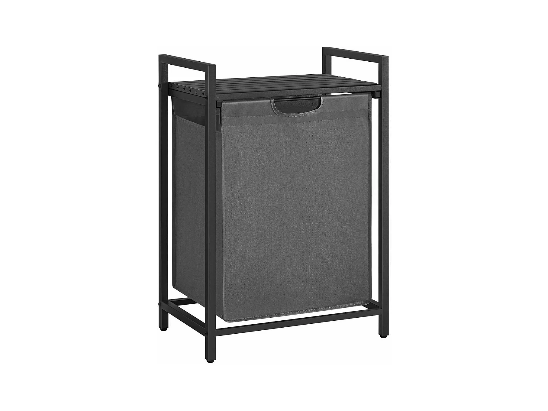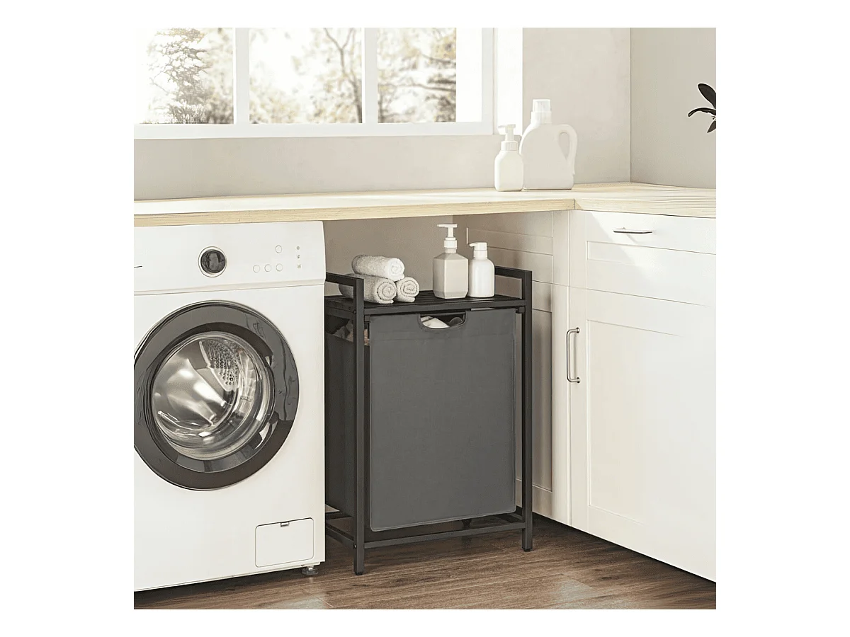 Wasmand met 2 uitneembare zakken, grijze en natuurlijke bamboe plank, groot volume (63,5x33x73cm)