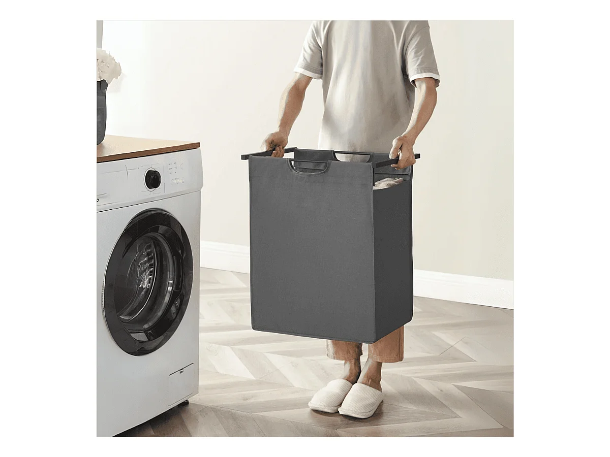 Wasmand 100L met 2 compartimenten, bamboe, grijs (52x32x63 cm)