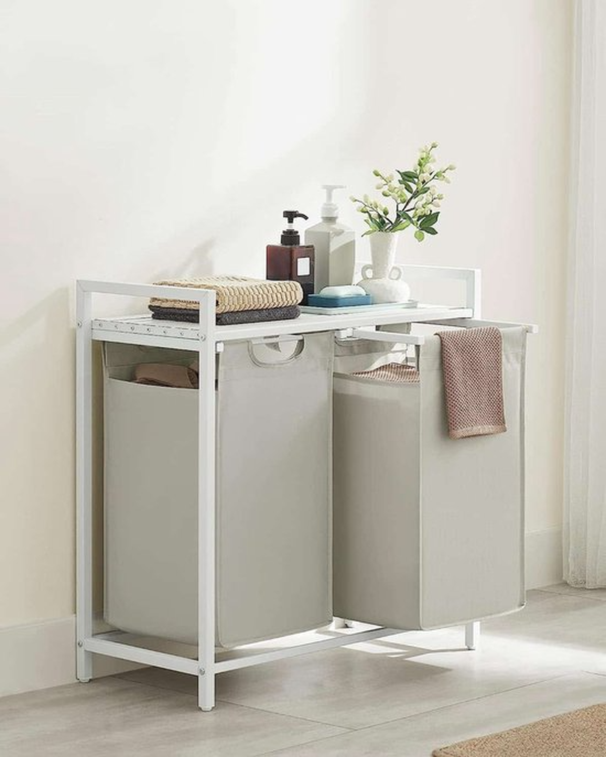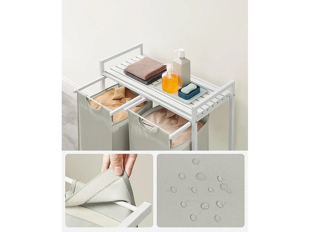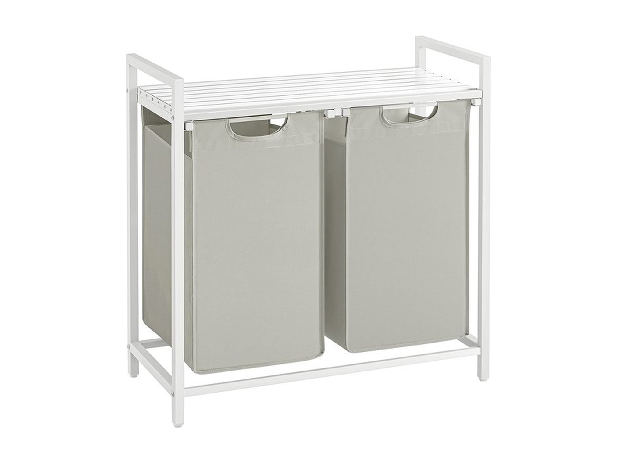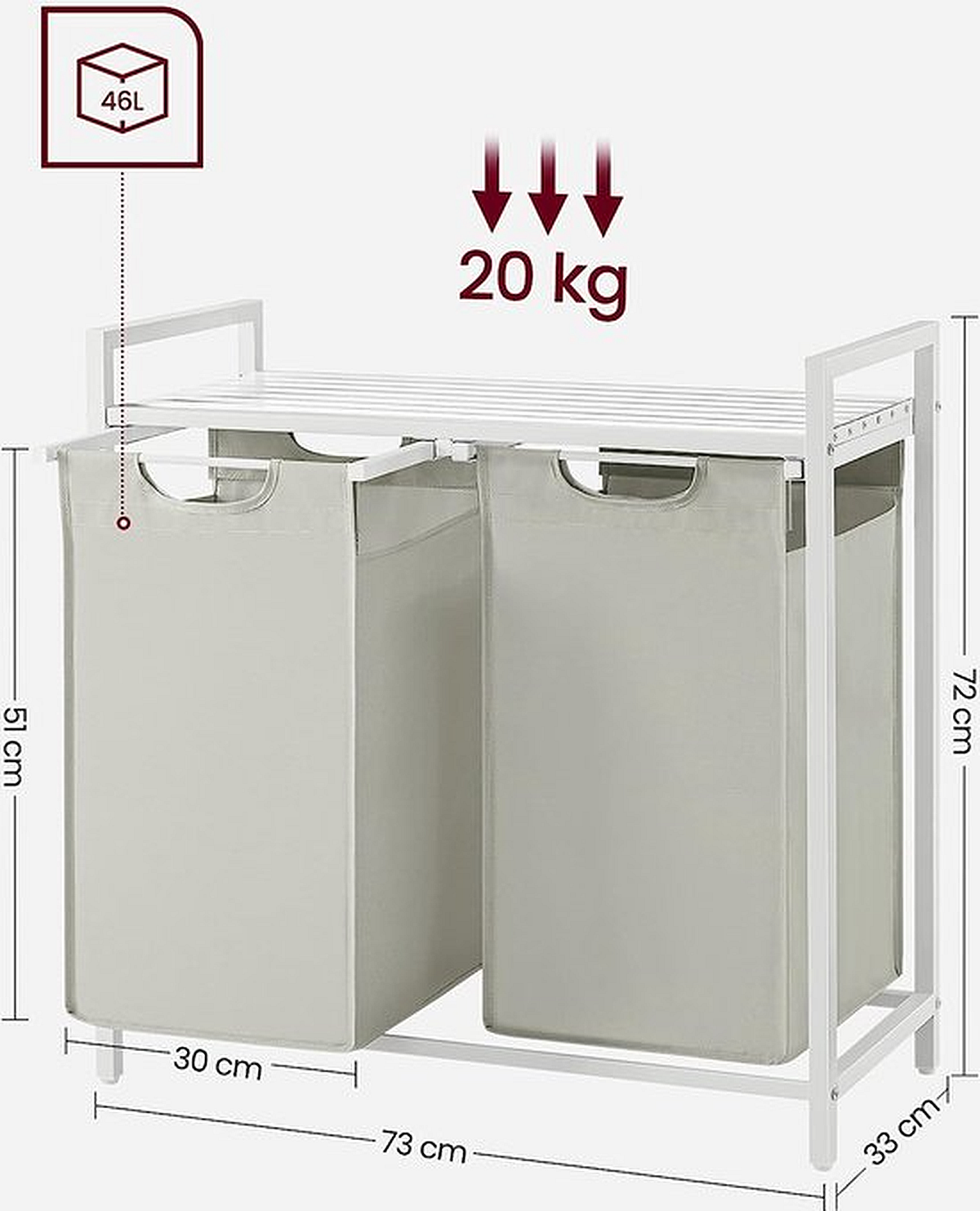 Wasmand 2 compartimenten, wasmand met plank, waskast, 2 x 46 l, 73 x 33 x 72 cm, wit