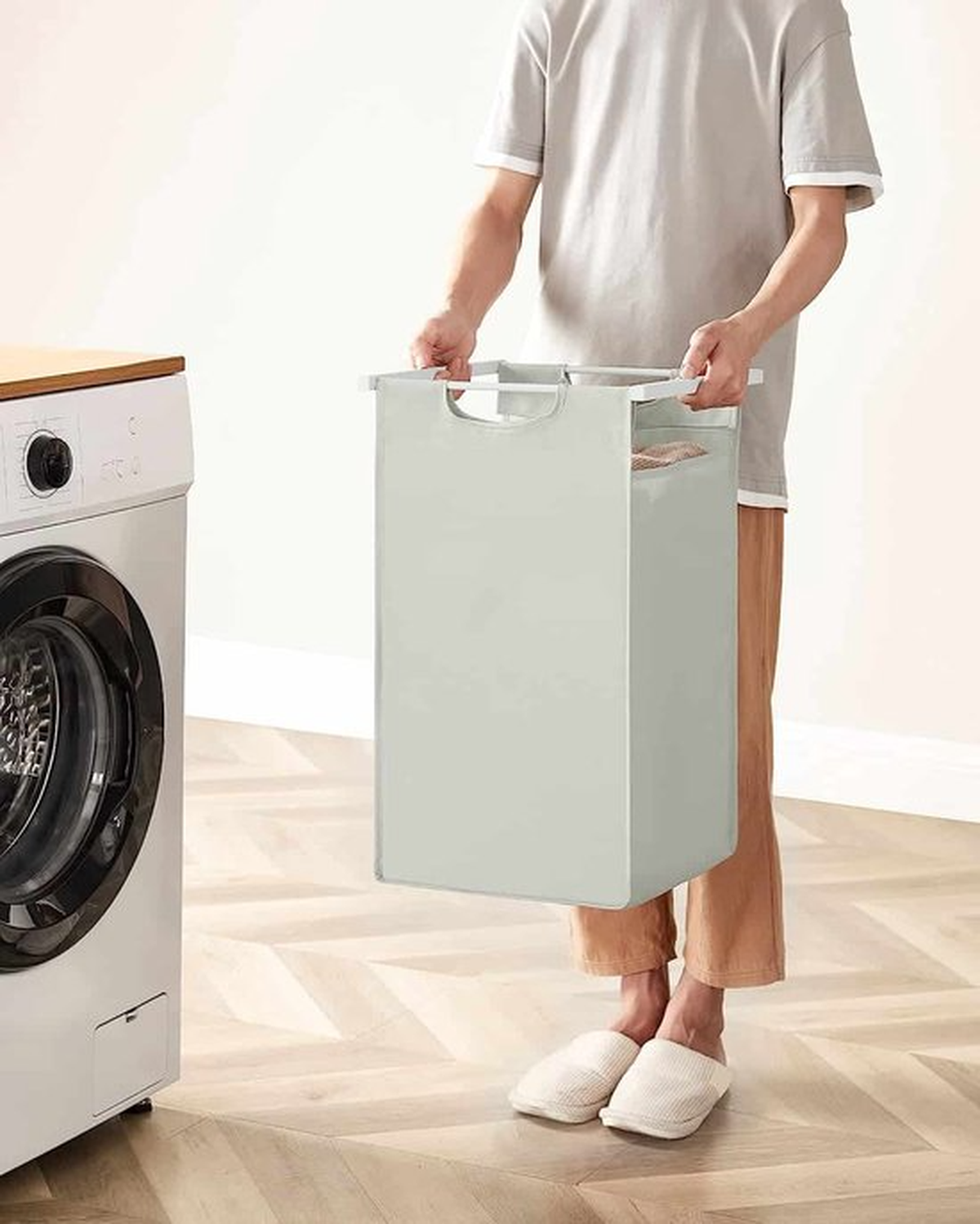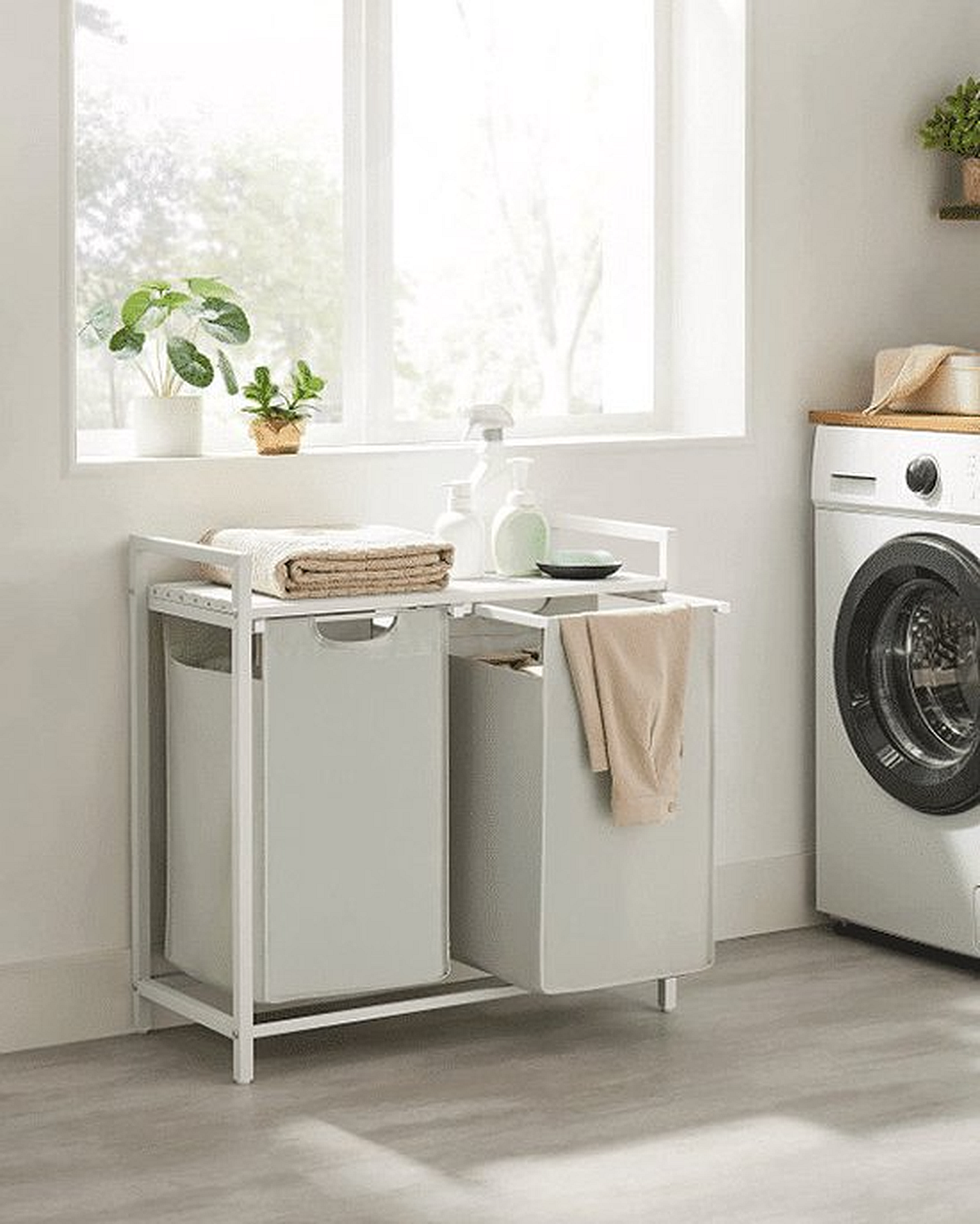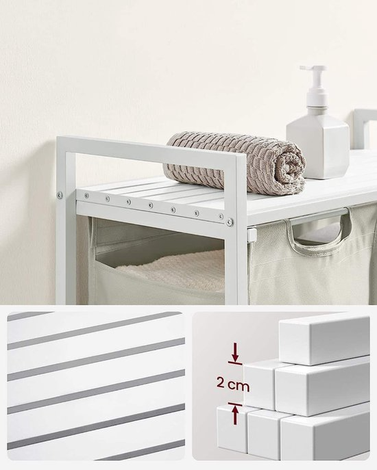 Wasmand 2 compartimenten, wasmand met plank, waskast, 2 x 46 l, 73 x 33 x 72 cm, wit