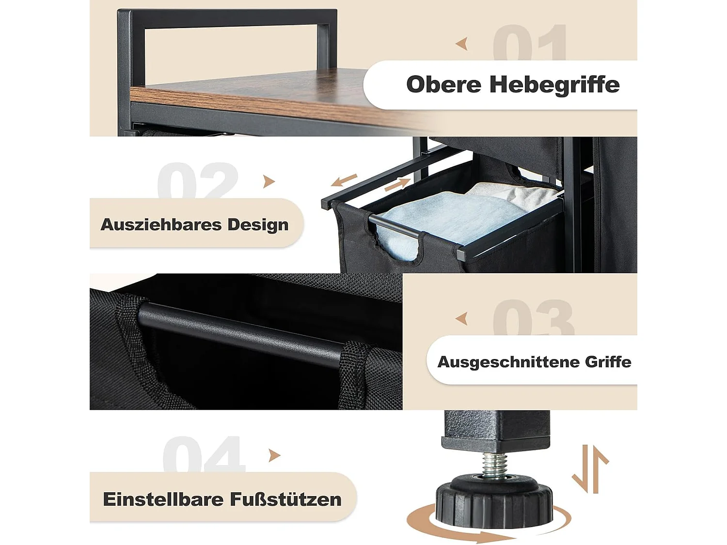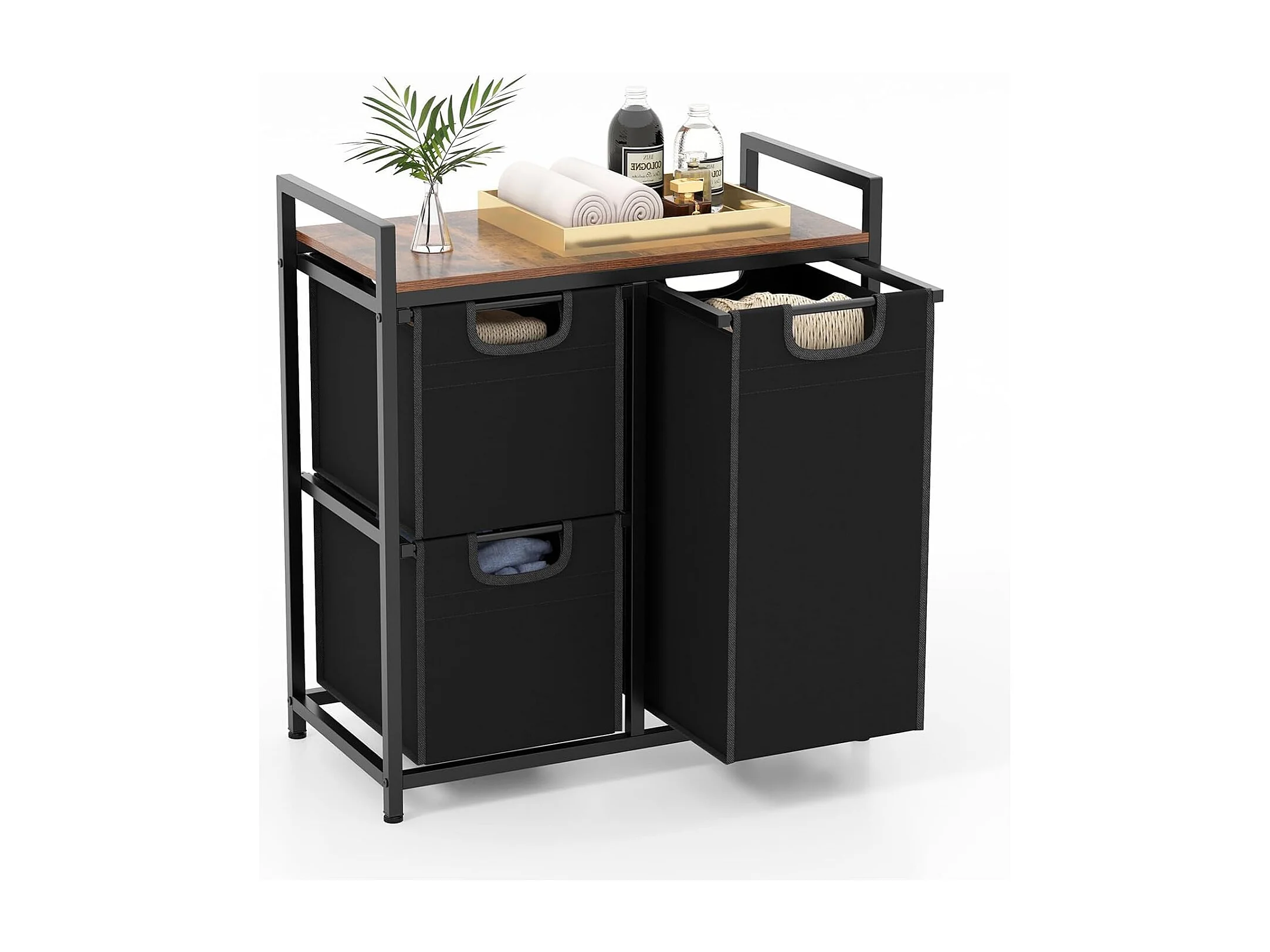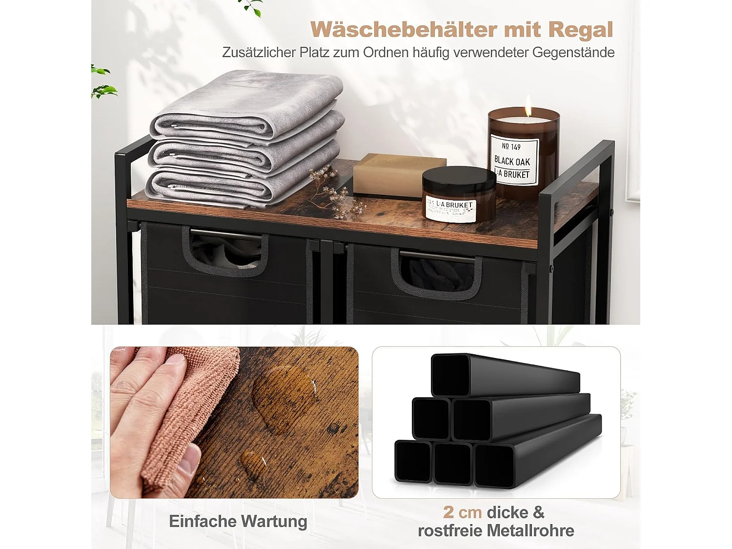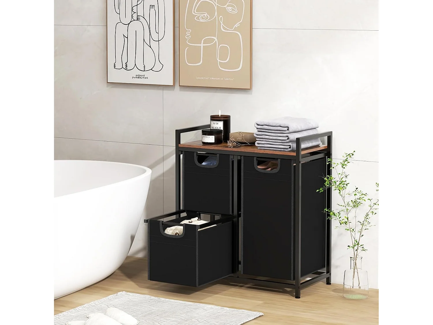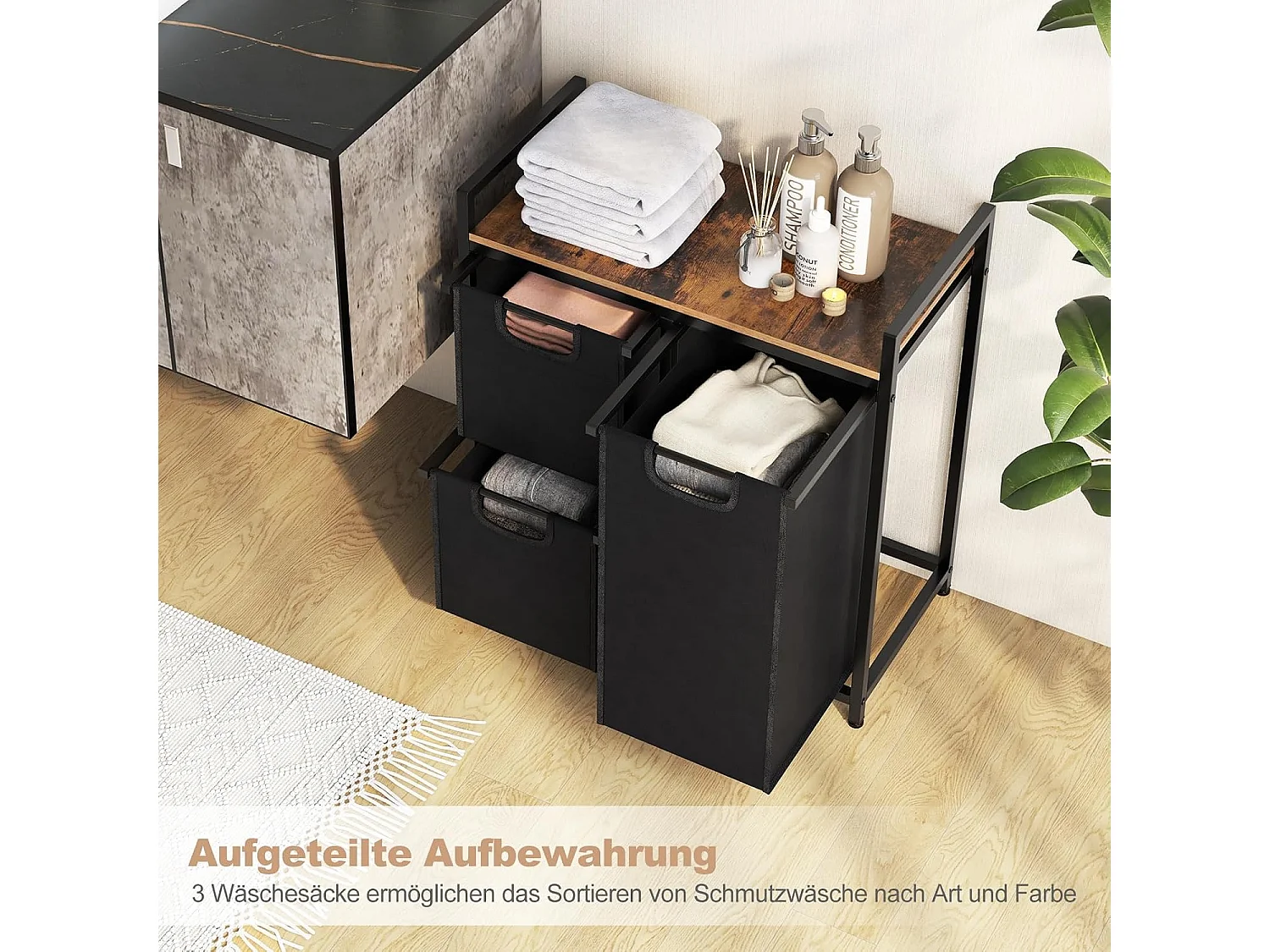 Wasmand, 3 vakken, wasverzamelaar met plank, 75 l, wassorteerder met 3 afneembare vakken en metalen frame, uittrekbaar voor bijkeuken, badkamer(3 vakken)VL32390