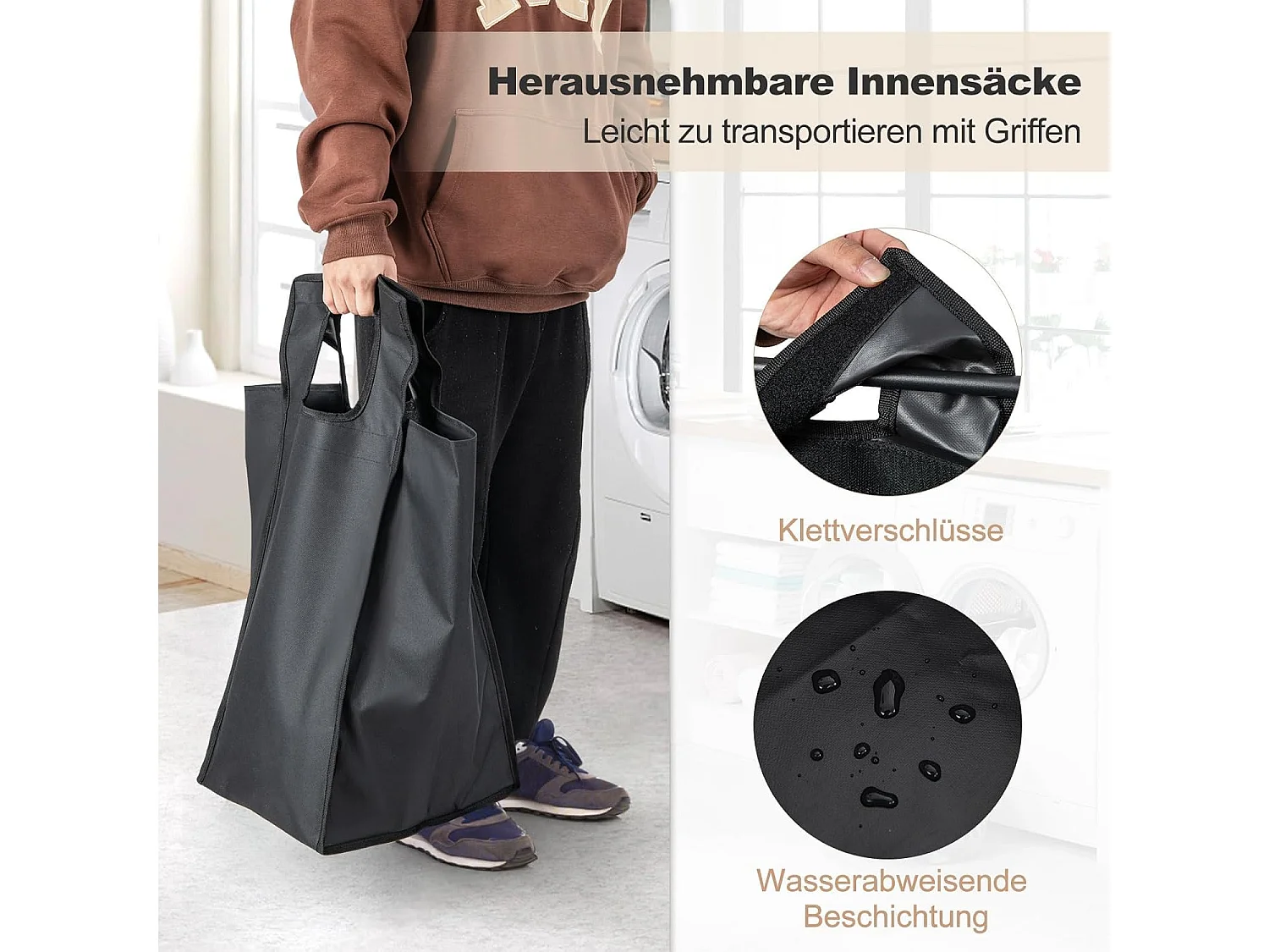 Wasmand Met 3 Vakken, Uittrekbaar Wassorteerder, Afneembaar Waszak, 3 X 38L, 92,5 X 33 X 72 Cm