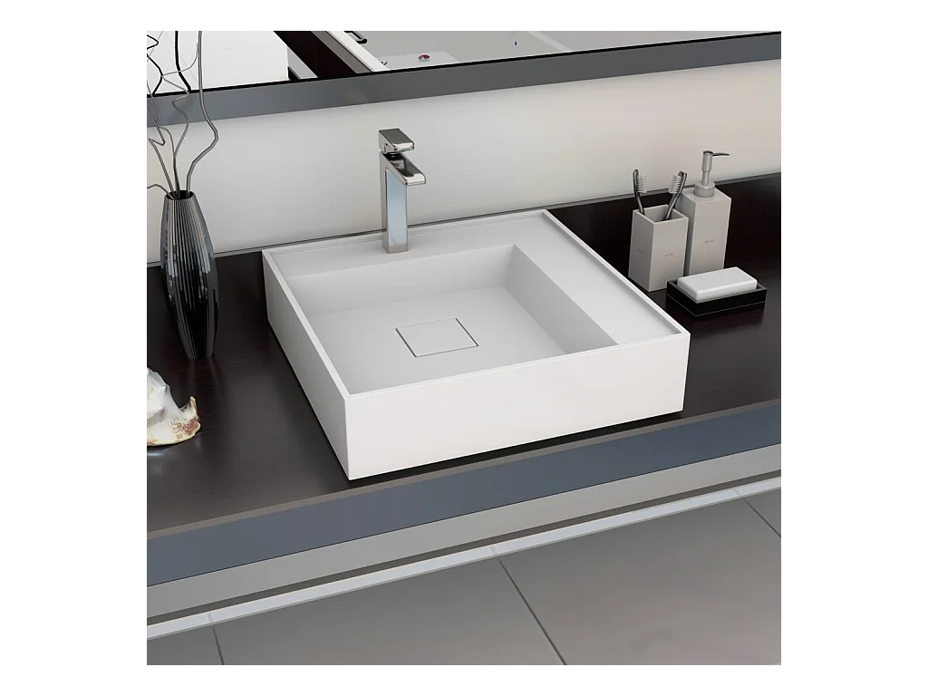 Luxe vierkante keramische wastafel met overloop 41 x 41 cm
