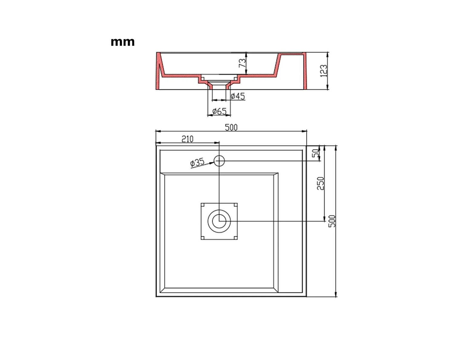 Wastafel 50x50x12,3 cm Mineraal gegoten/marmer Wit