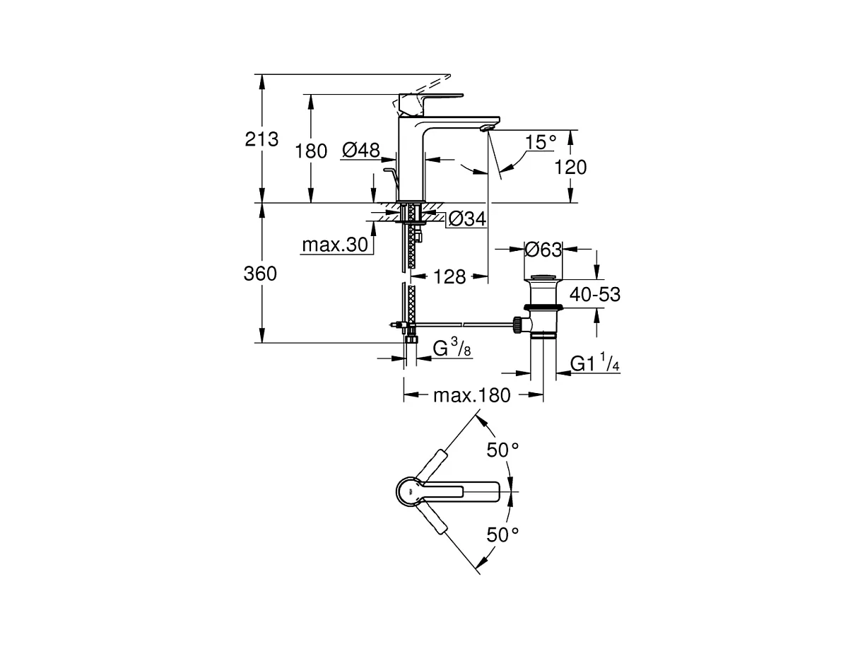 Wastafelmengkraan GROHE Quickfix Feel met trekstang en afvoer maat S
