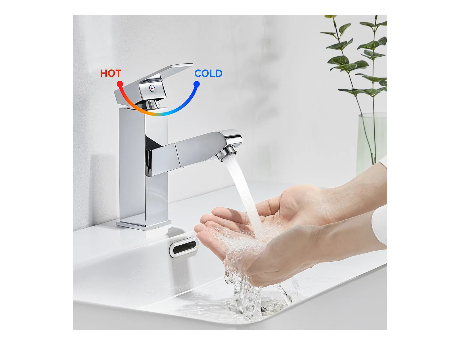 Wastafelkraan met uittrekbare douchekraan badkamer messing verchroomde wastafelmengkraan koud/warm water badkamerkraan, EU Model