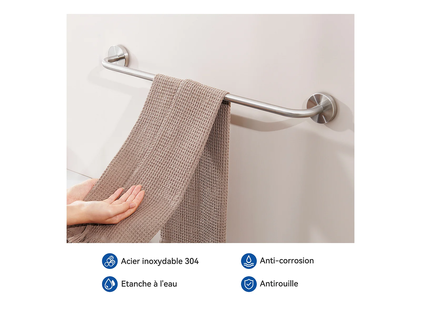 Auralum Max Eengats Wastafelmengkraan met Afvoergreep, Inclusief Afvoer, Verchroomd+60cm Handdoekhouder Badkamer Zelfklevend of Boren in 304 RVS