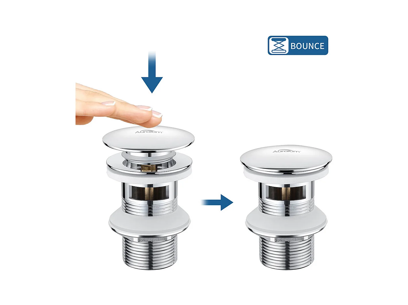 Auralum max Bonde Pop Up met Overloop, Verchroomd, Universele Wastafel Afvoerplug met Zeefmand, Messing Anti-Cap Afvoer Badkamer