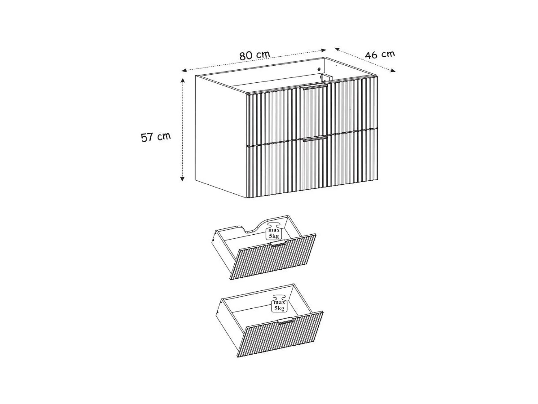 Wastafelmeubel, Kasjmier, 80 x 57 x 46 cm, zilveren greep, zonder deksel