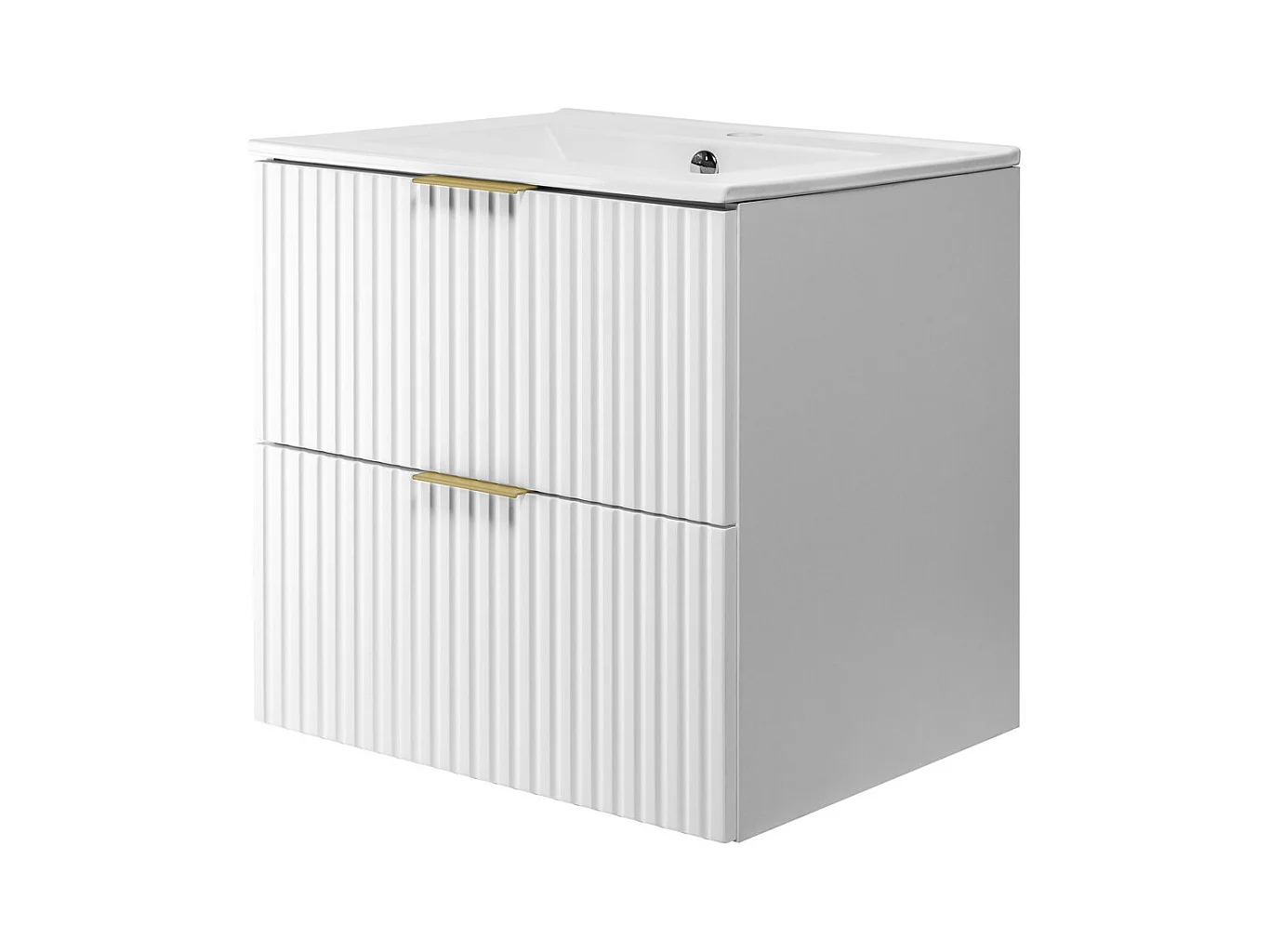 Wastafelmeubel, Wit, 60 x 57 x 46 cm, gouden handgreep, zonder bovenblad