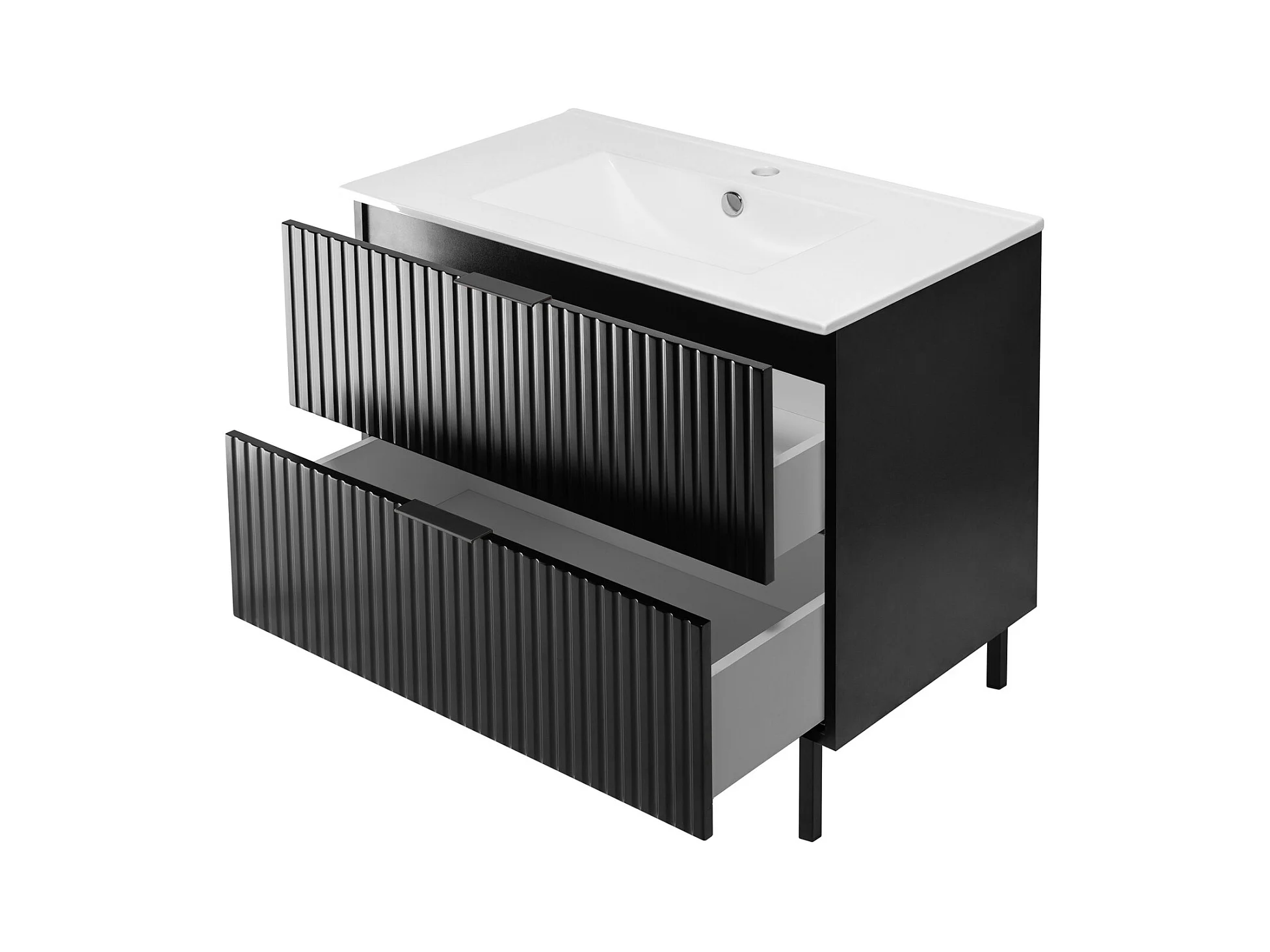 Wastafelmeubel, Zwart, 80 x 77 x 46 cm, Zwarte handgreep, Zwarte poten, zonder bovenblad