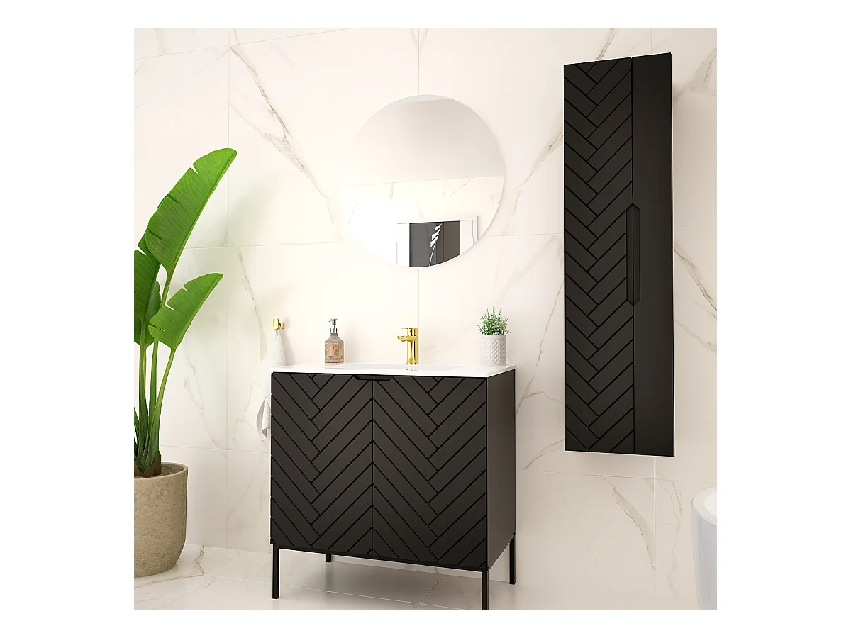 Hangende badkamerkolom - Licht naturel en zwart - H140 cm - MADELA