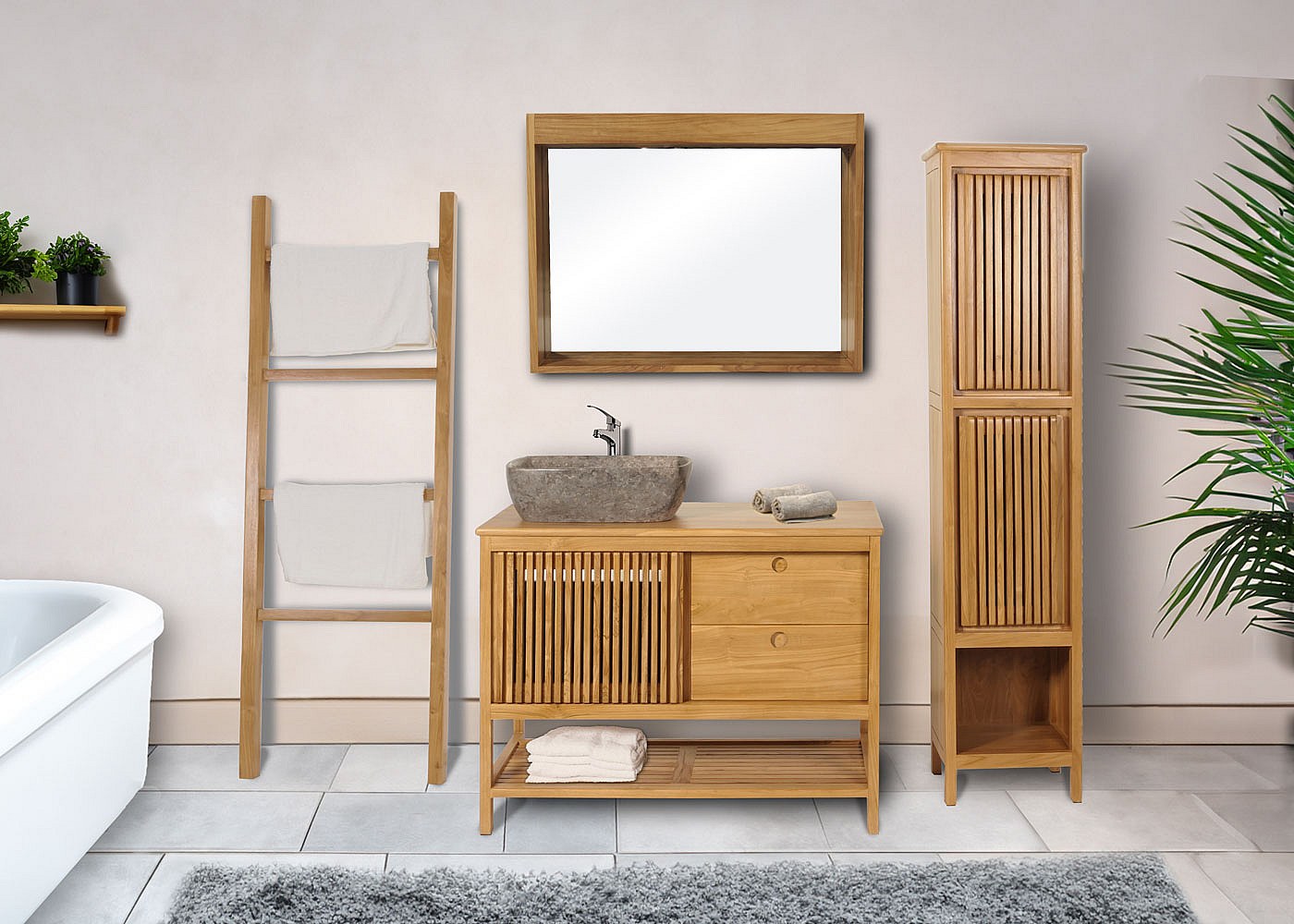 Badkamerwandkast 80x38,5x45 cm bewerkt hout artisanaal eiken