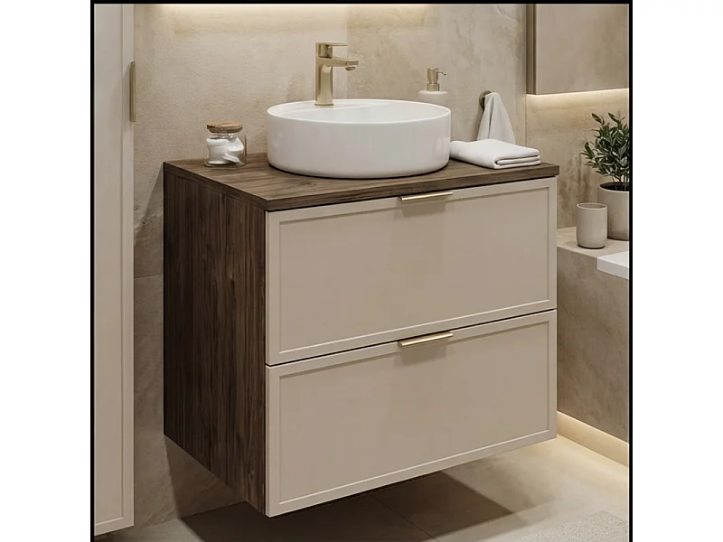 Wastafelonderkast met blad 60 cm Fronten Frame Eiken Noten / Kasjmier Roma