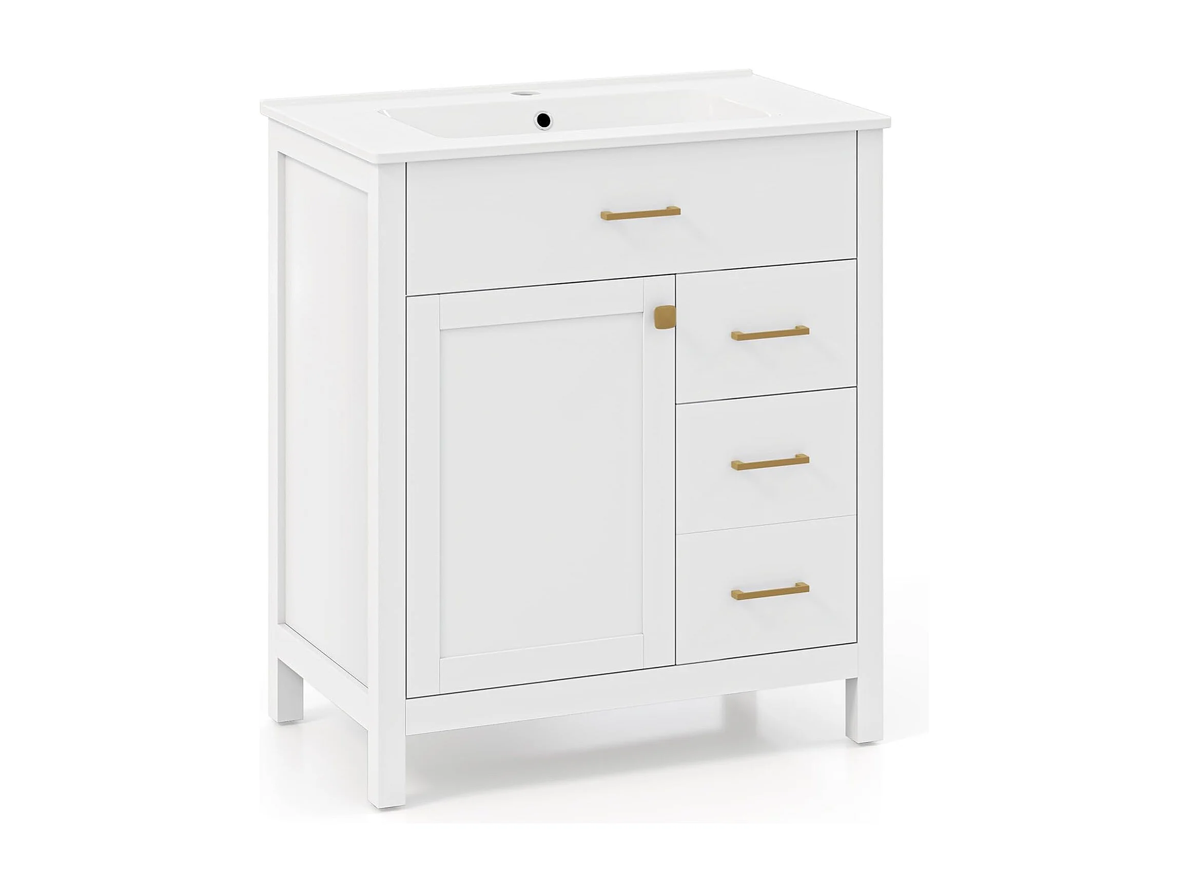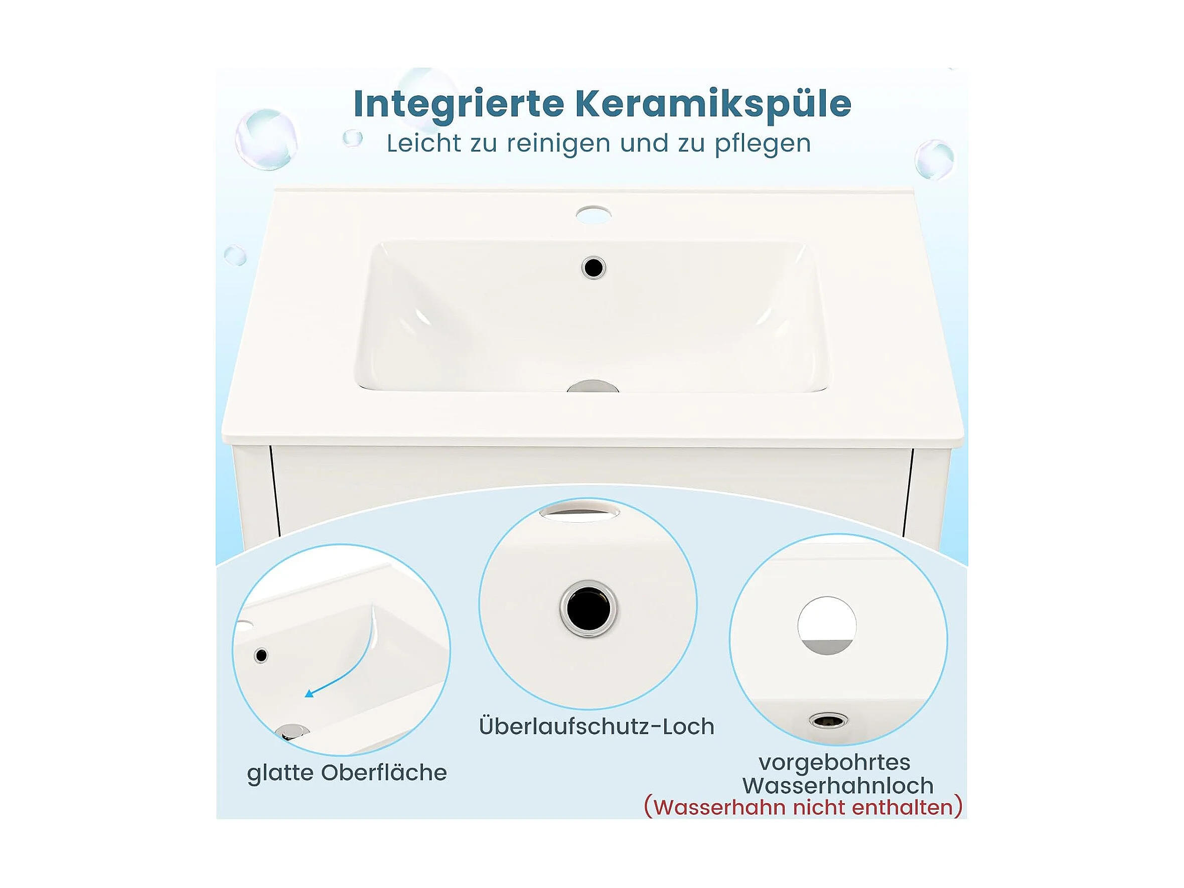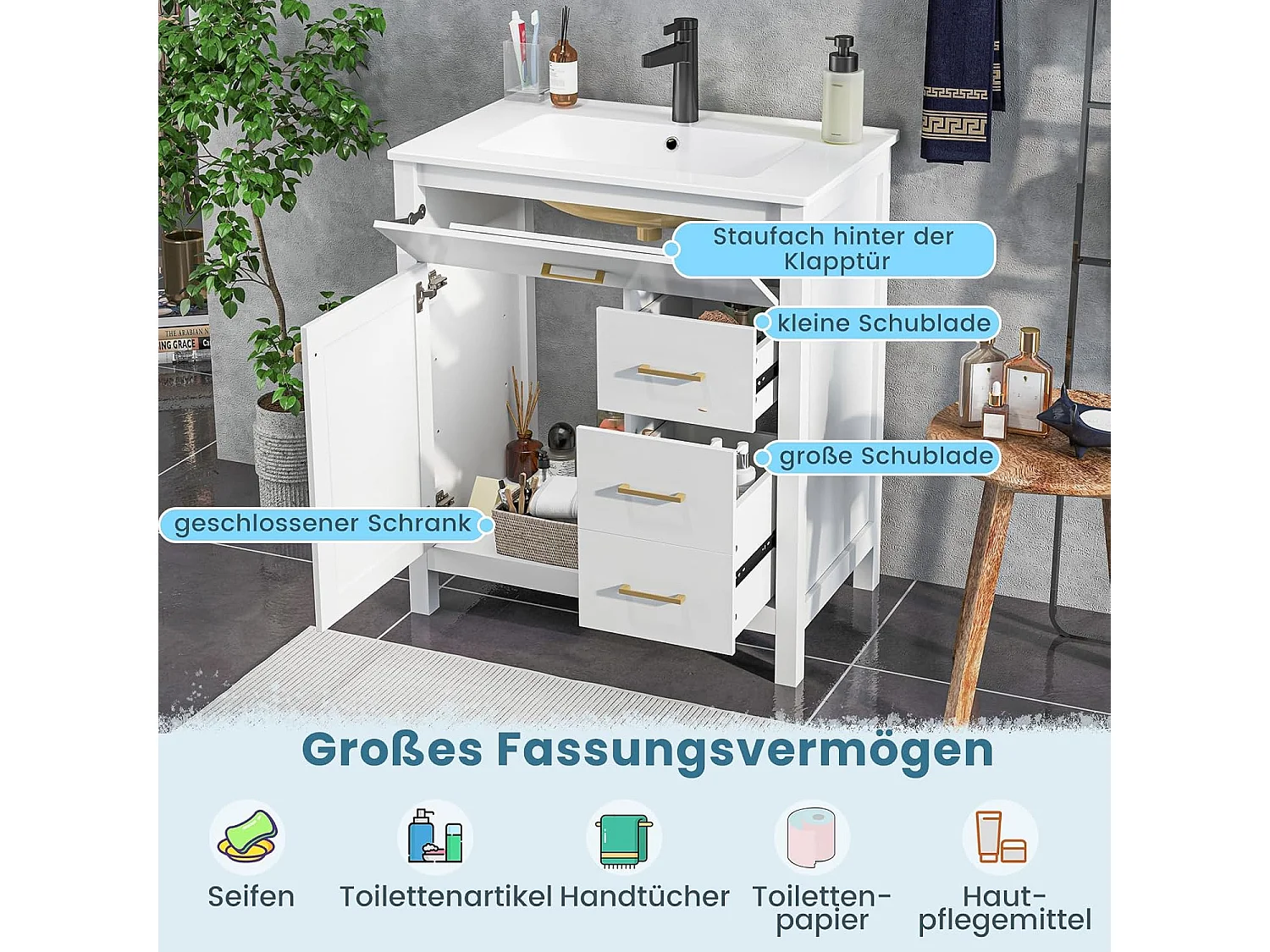 Wastafelonderkast met onderkast, wastafelonderkast met 2 laden en 2 deuren, wastafelonderkast hout, 76 x 46,5 x 86 cm, witVH34263