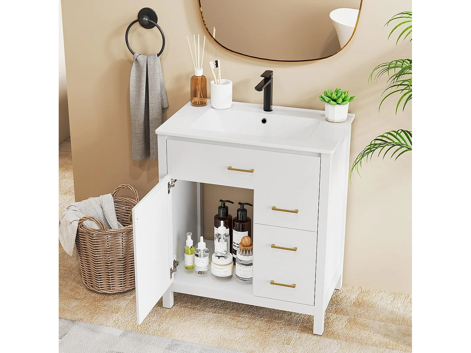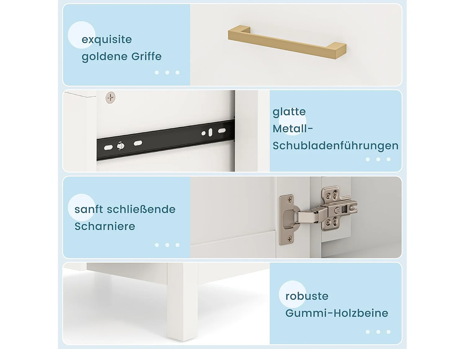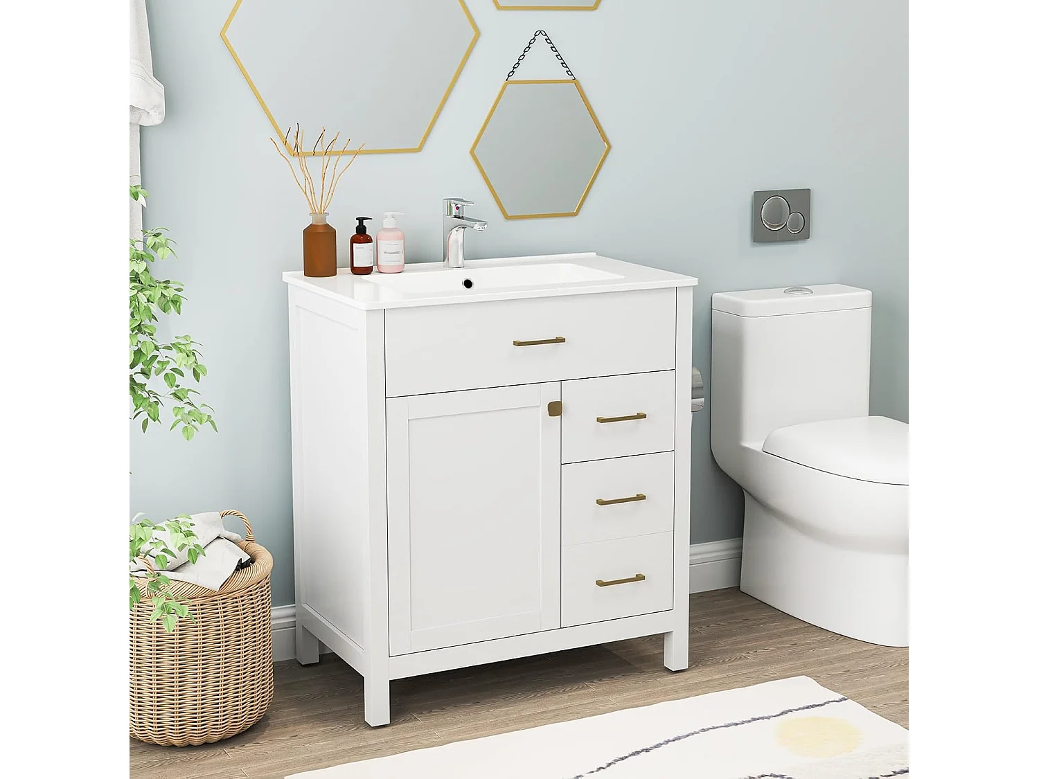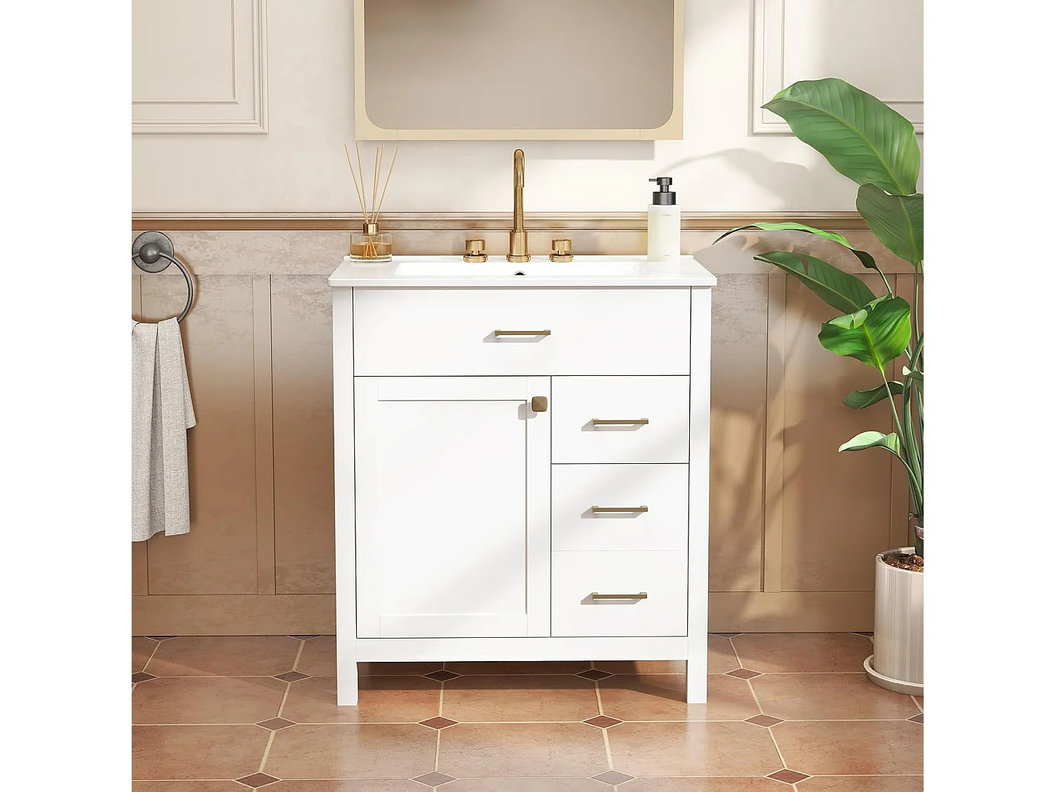 Wastafelonderkast met onderkast, wastafelonderkast met 2 laden en 2 deuren, wastafelonderkast hout, 76 x 46,5 x 86 cm, witVH34263