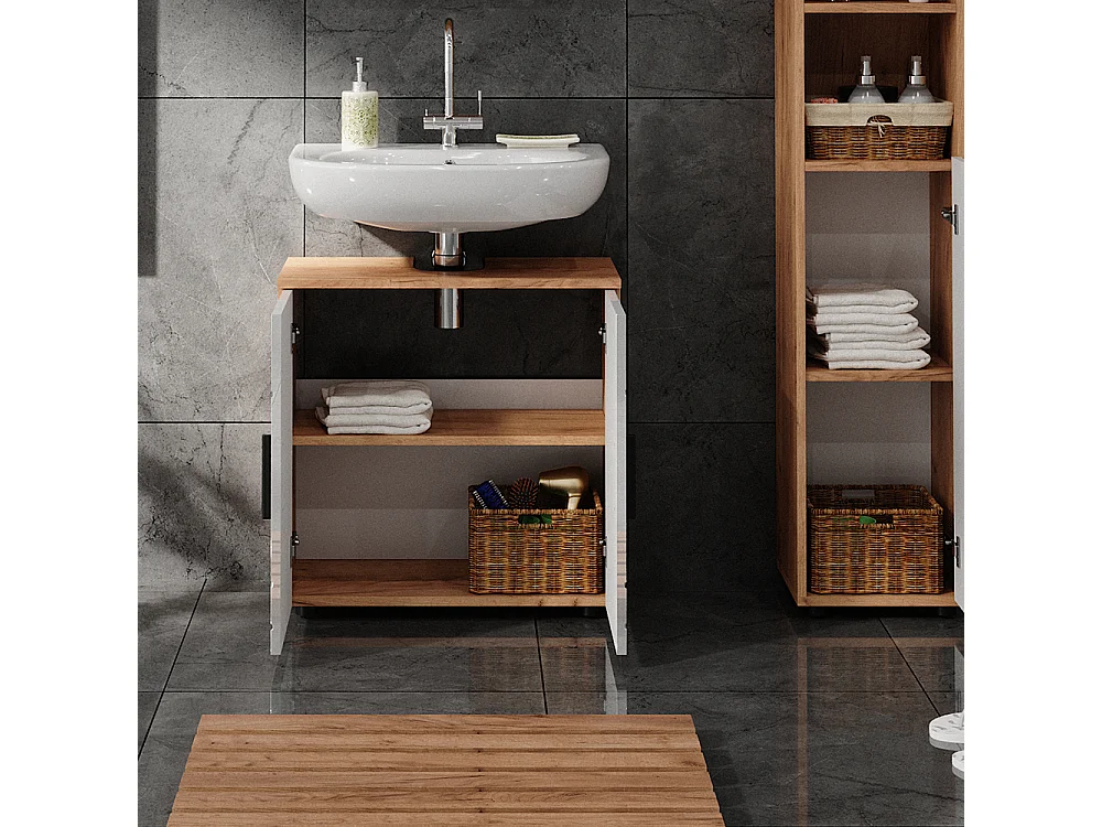Wastafelonderkast wit hoogglans/goud power eiken 60x30x59 irma
