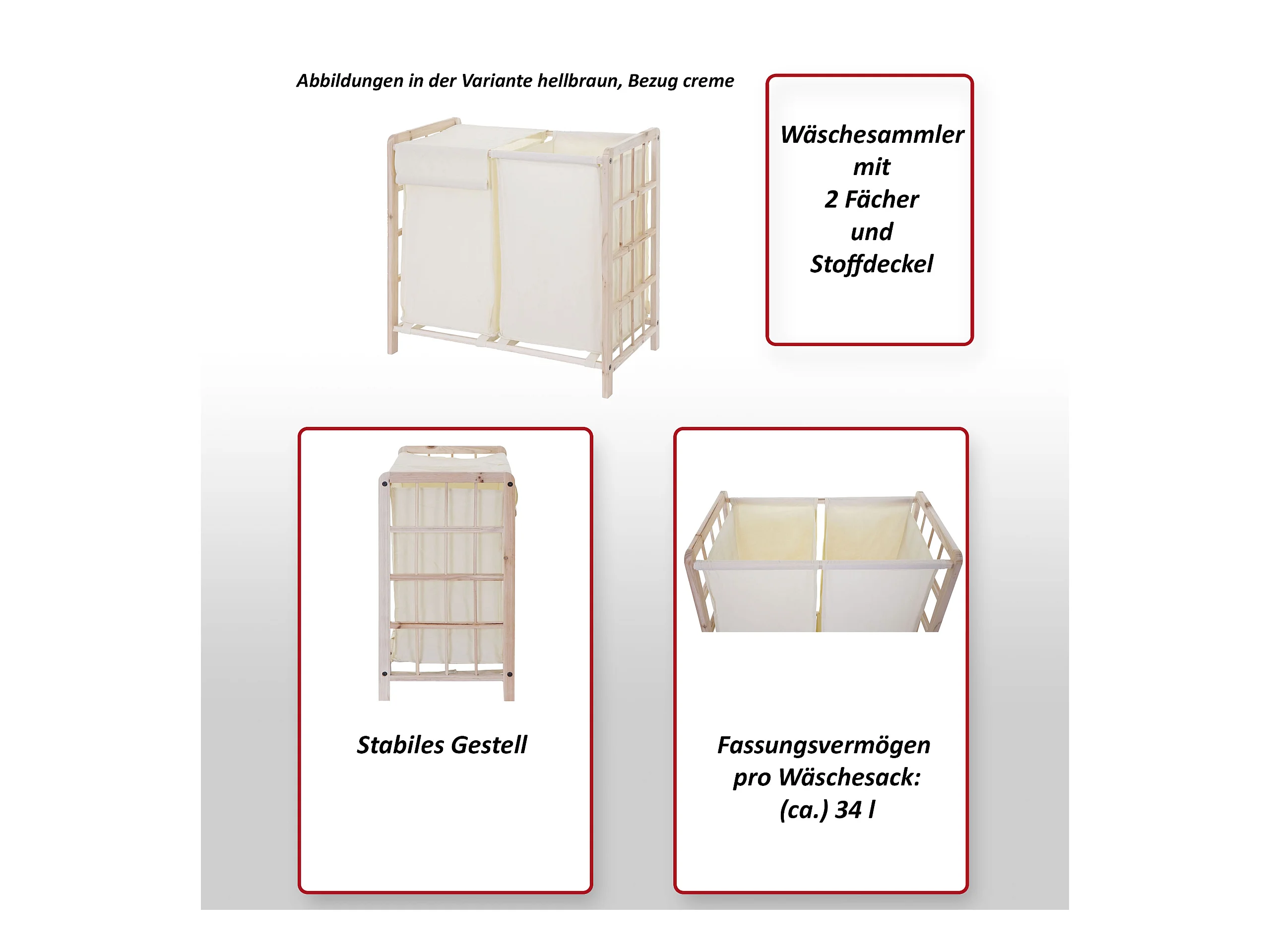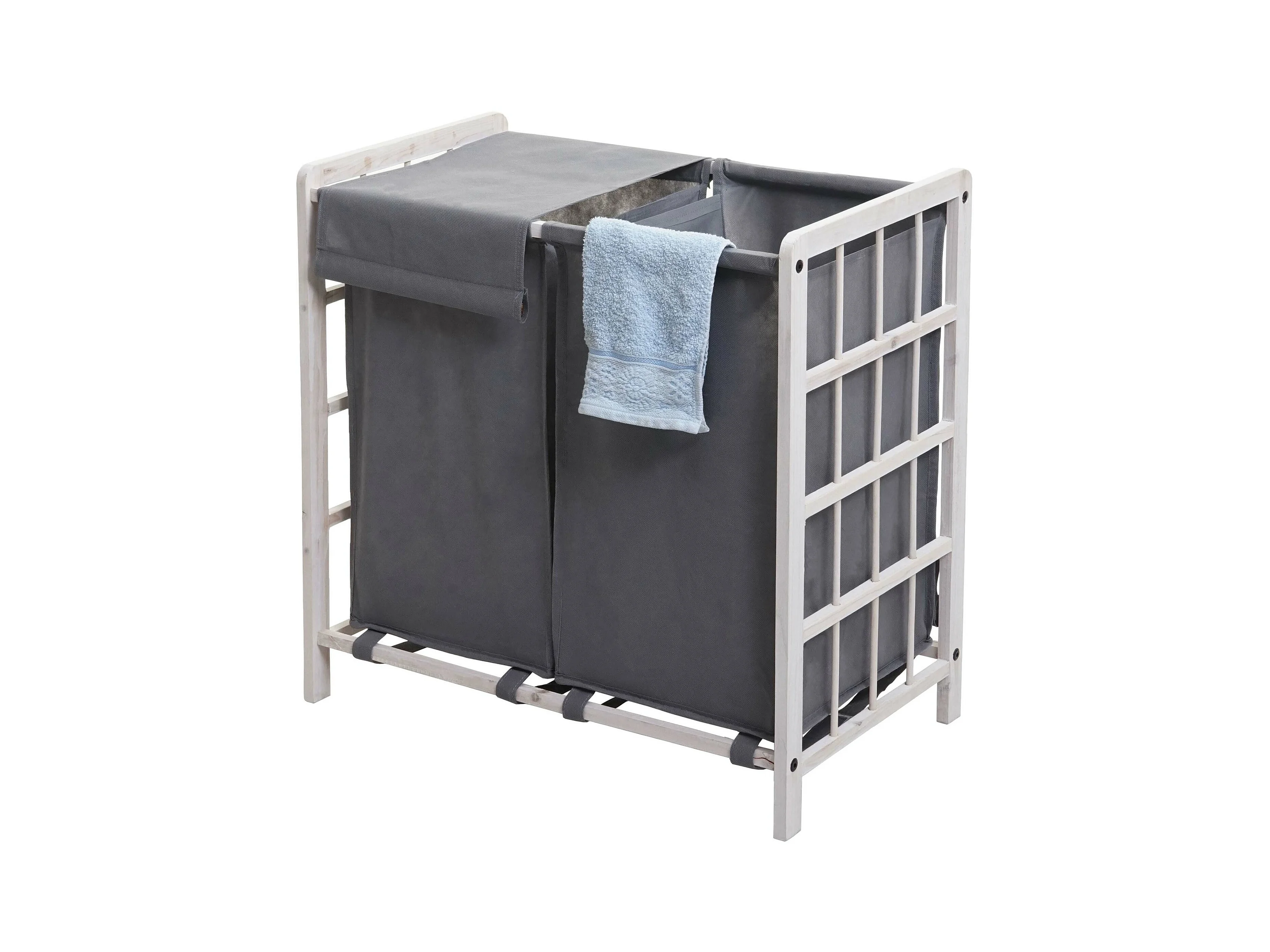 Wasmand met 2 uitschuifbare compartimenten lichtgrijs - L71 cm