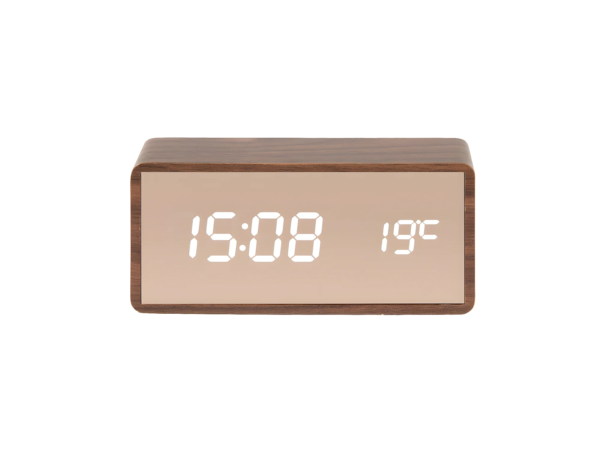 Wekker Copper Mirror LED - Donker hout