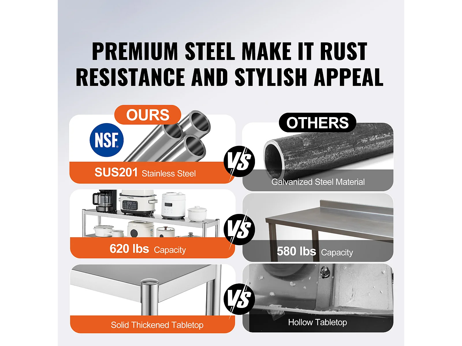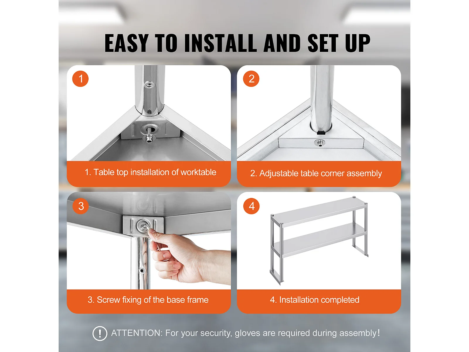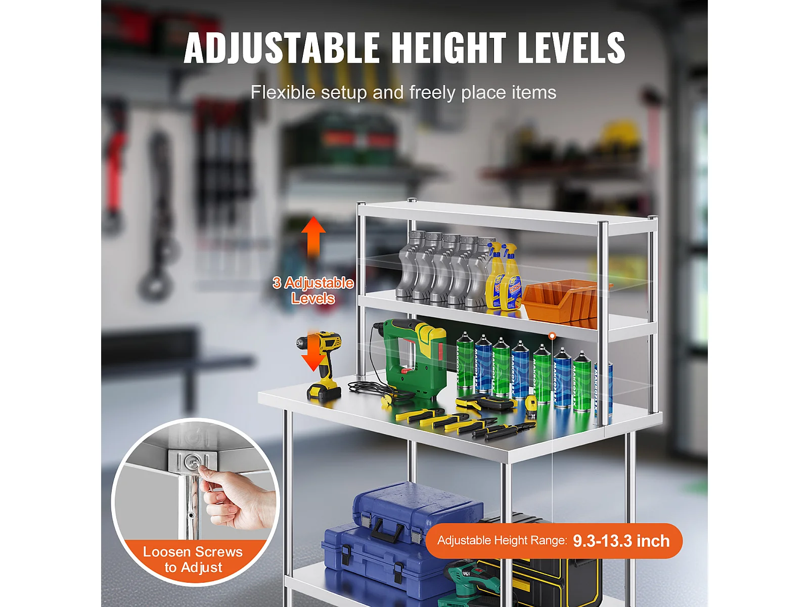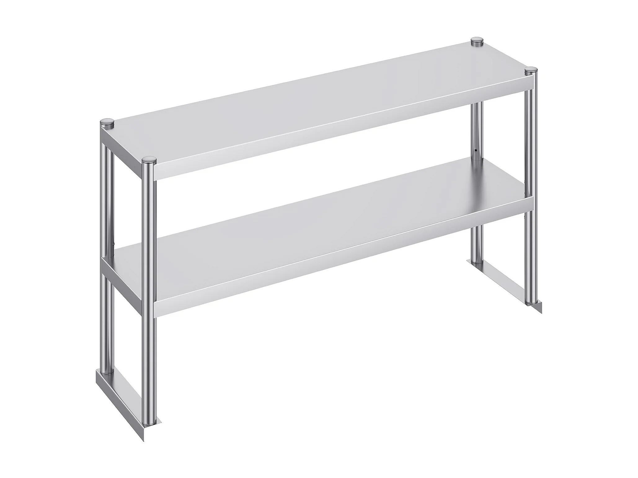 Werktafel Keuken SucceBuy 30,5x121,9 cm, Dubbele Etage met 2 Niveaus in Roestvrij Staal