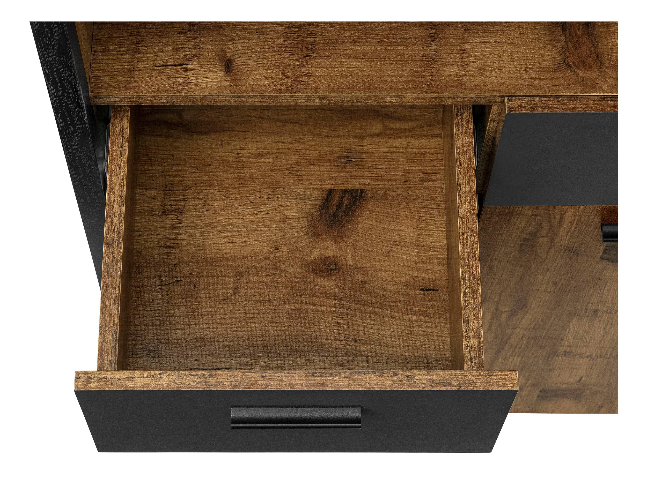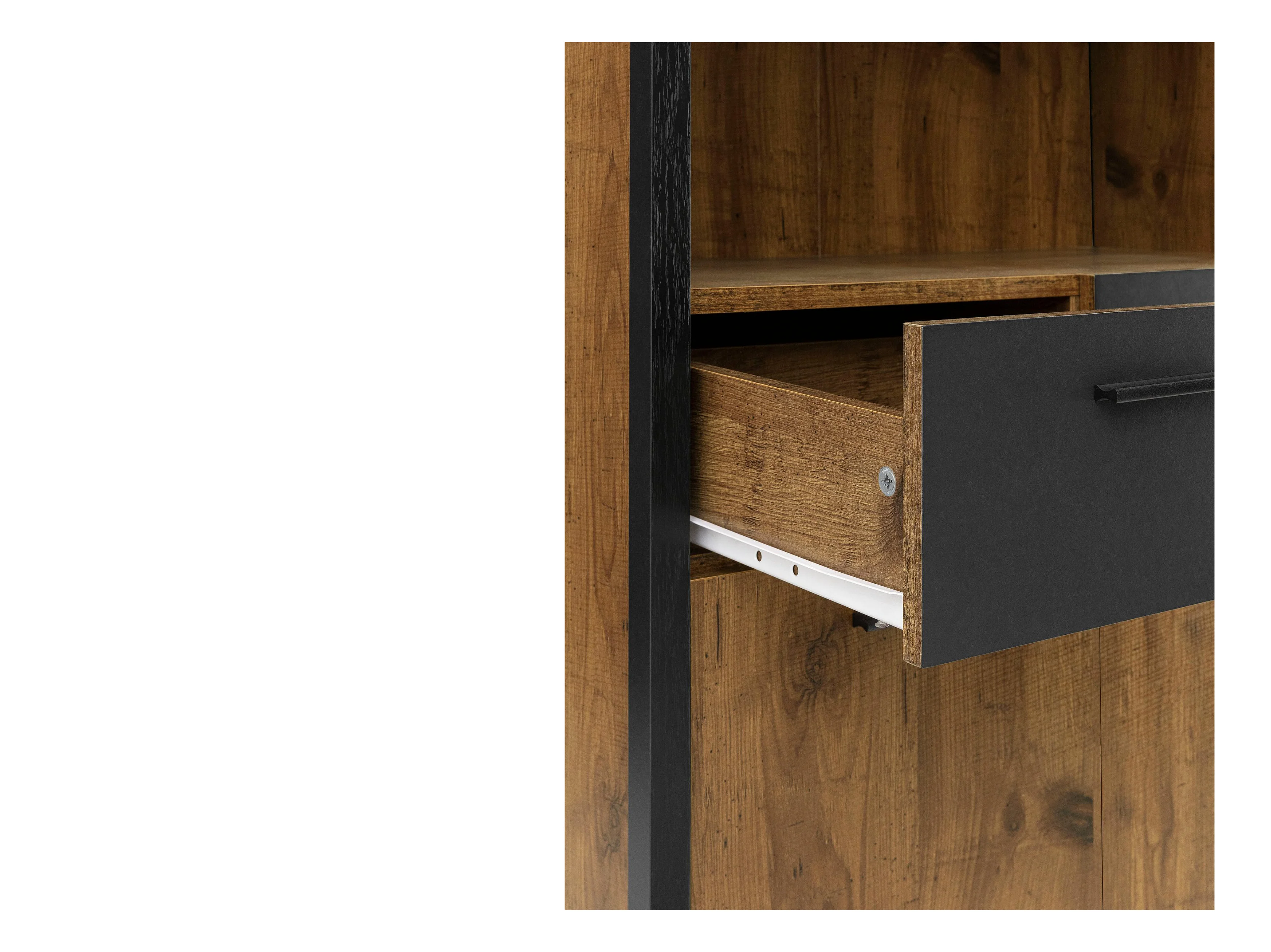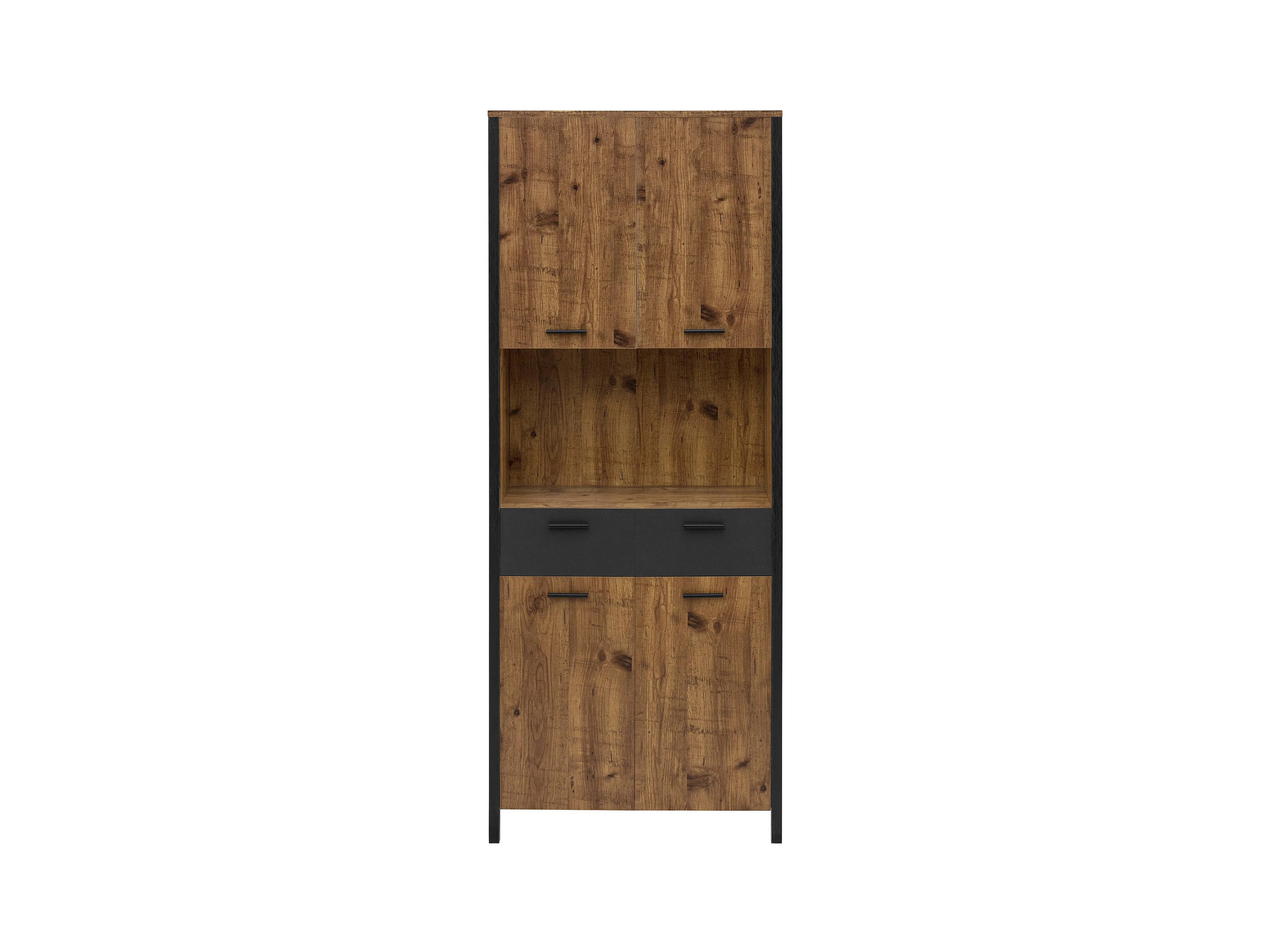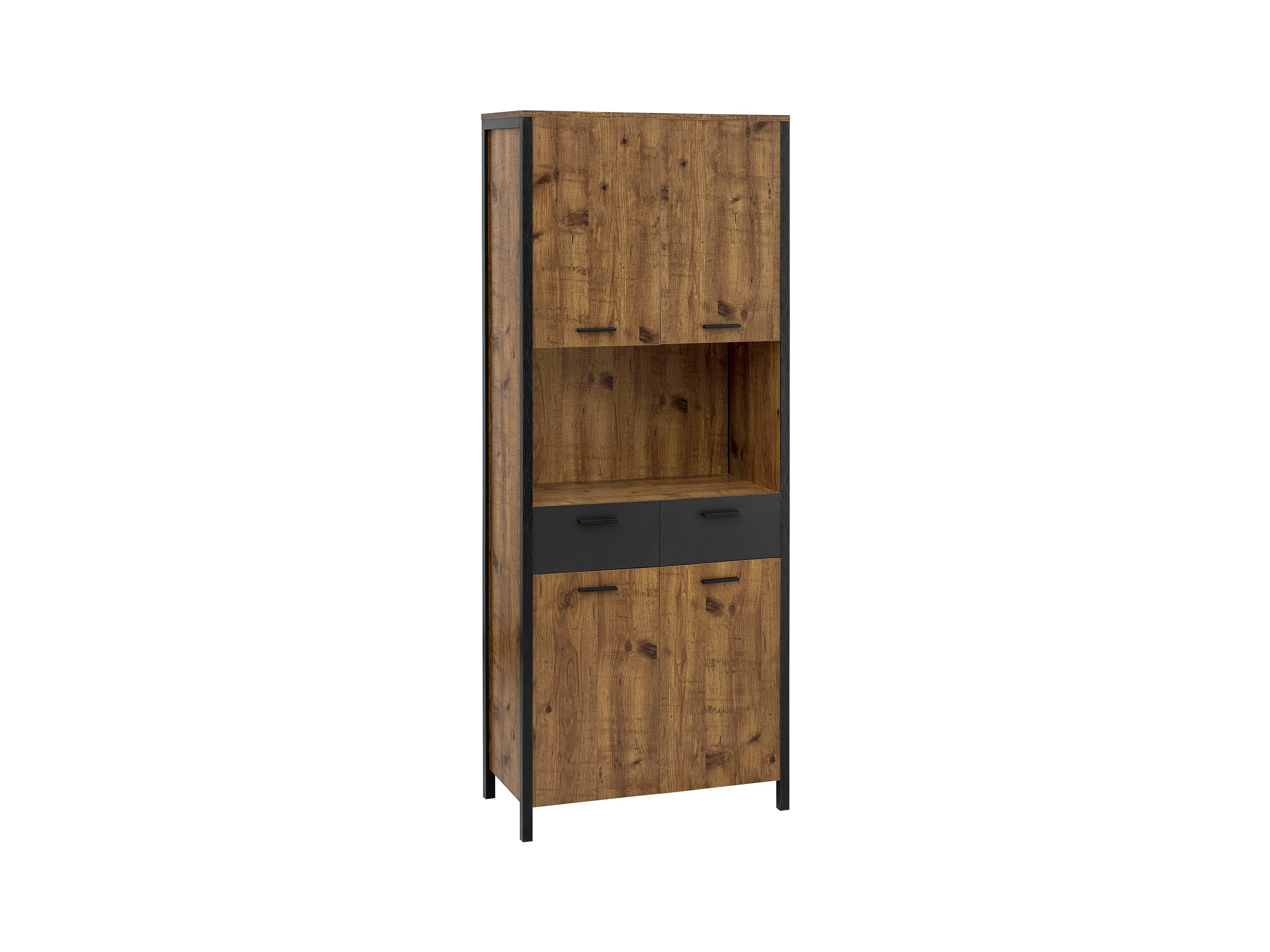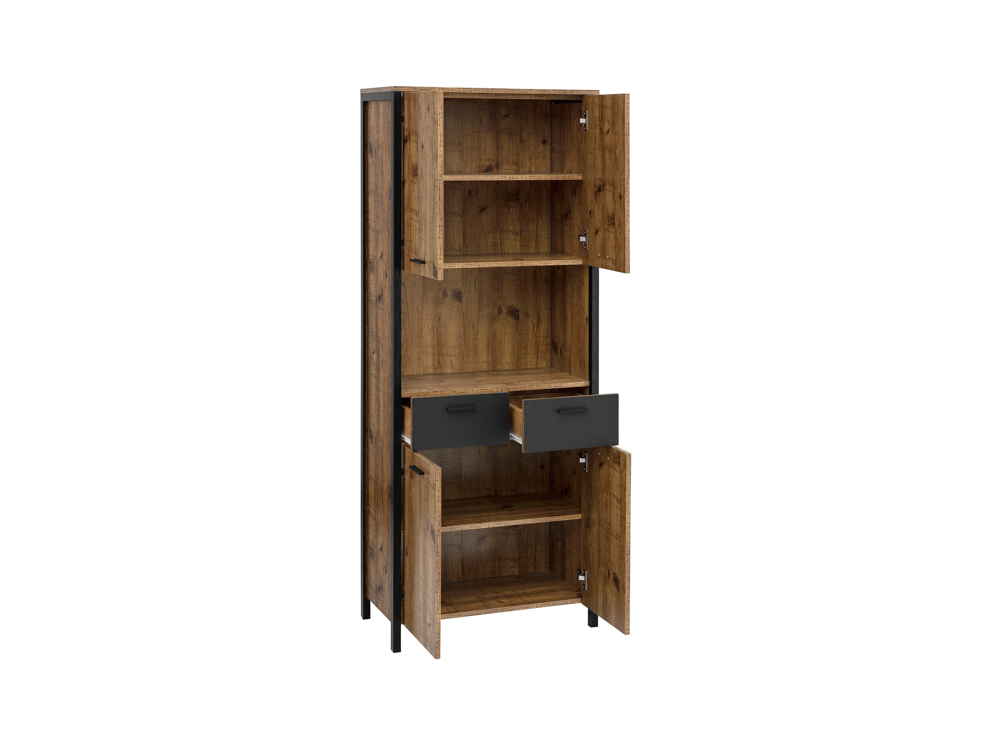 Werra | Hoge kast met 4 deuren en 2 laden in eiken / zwart metaal