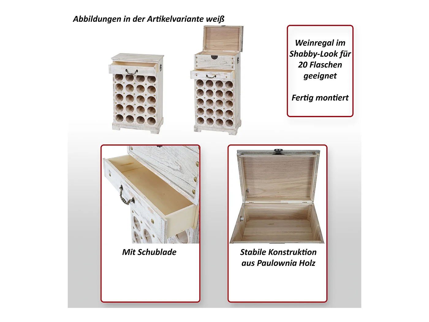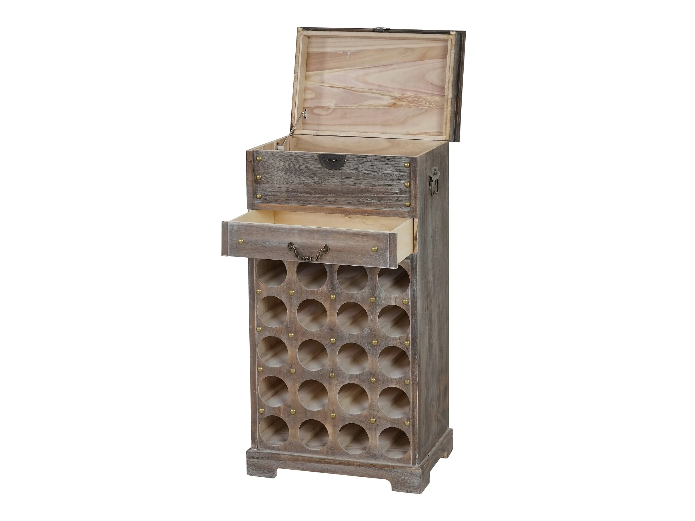 Wijnrek Rhone 20 flessen lade, Calvados wijnrek Houten rek, koloniale stijl, voor 20 flessen, met lade