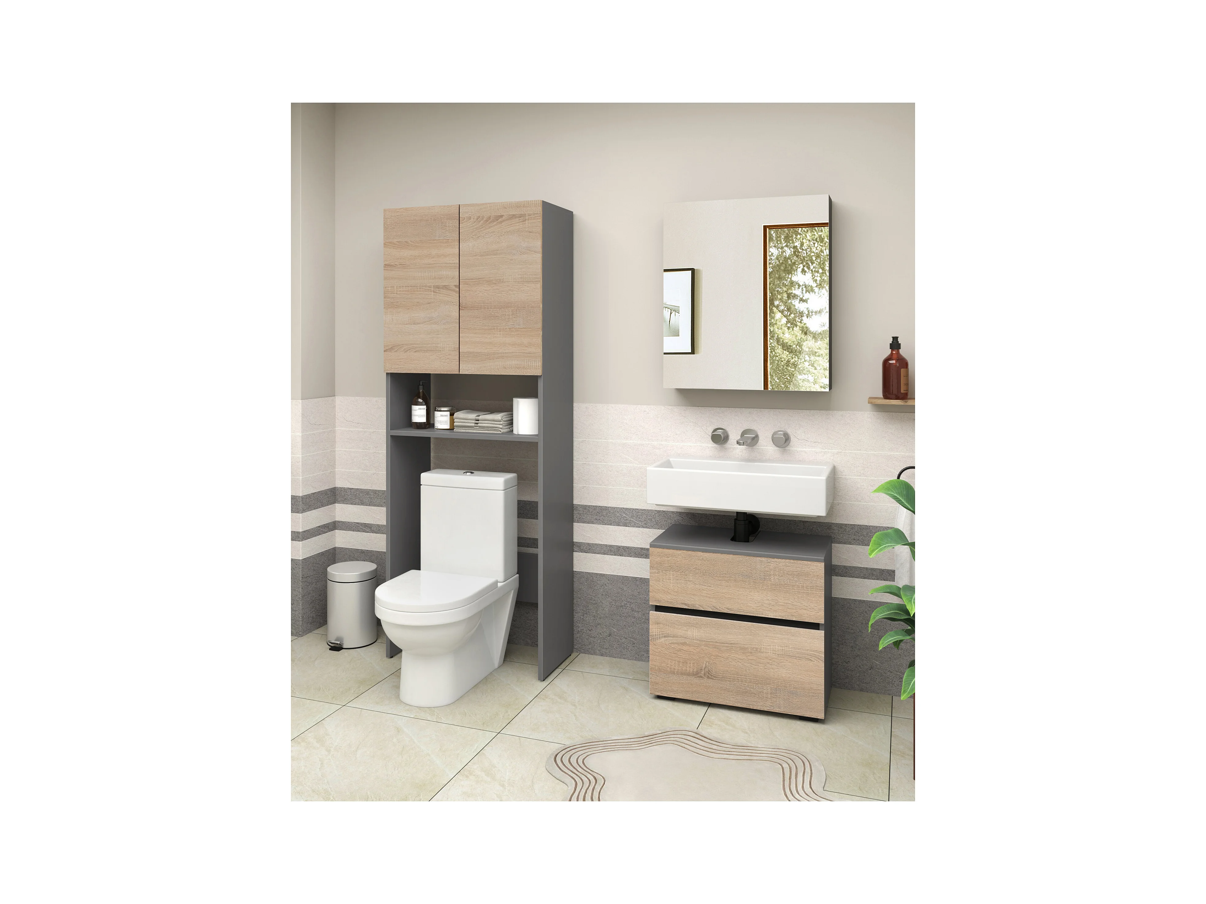 Wisla -Badkamerkast met 2 deuren 1 plank in eiken look antraciet