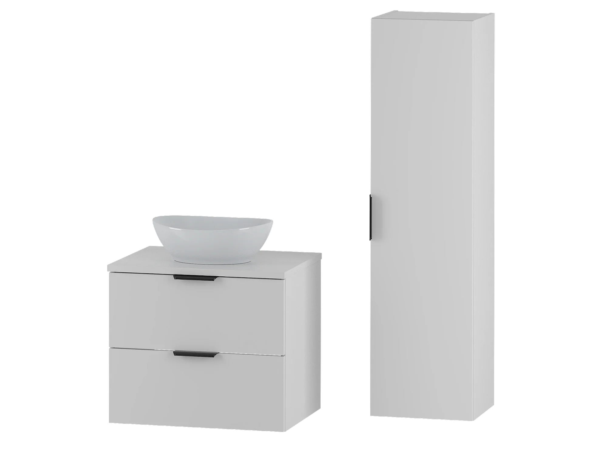 Wit badkamerset 60 cm Kast met blad Wastafel Kolom Pile
