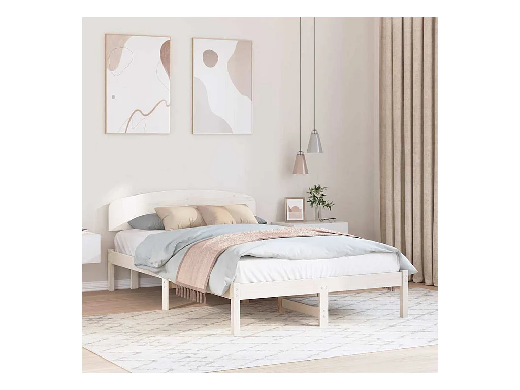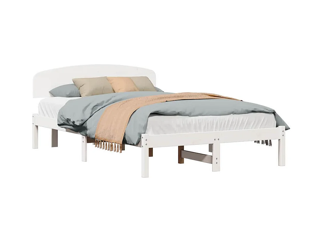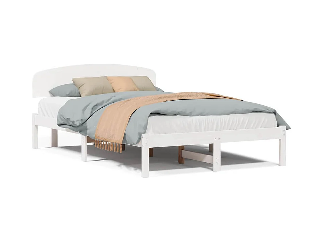 Bedframe met wit hoofdeinde 135x190 cm massief grenenhout