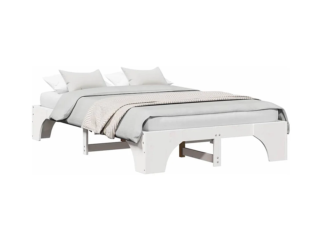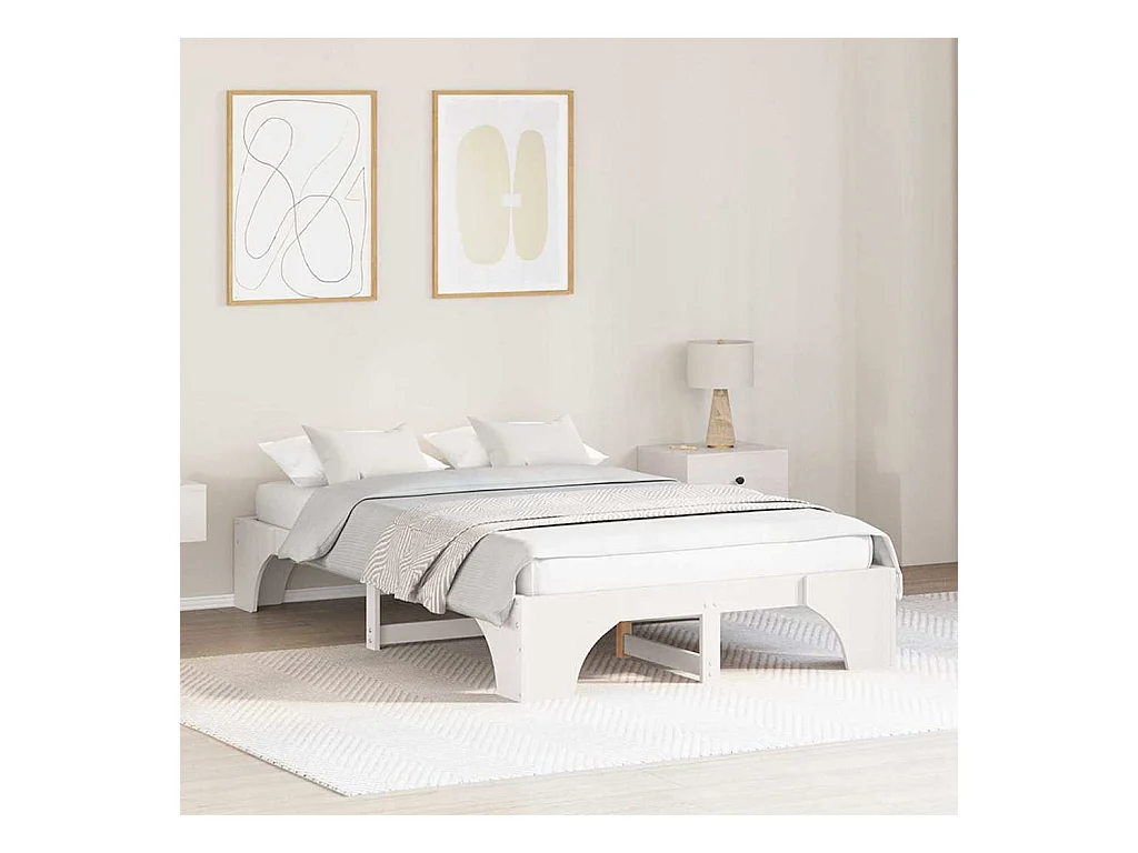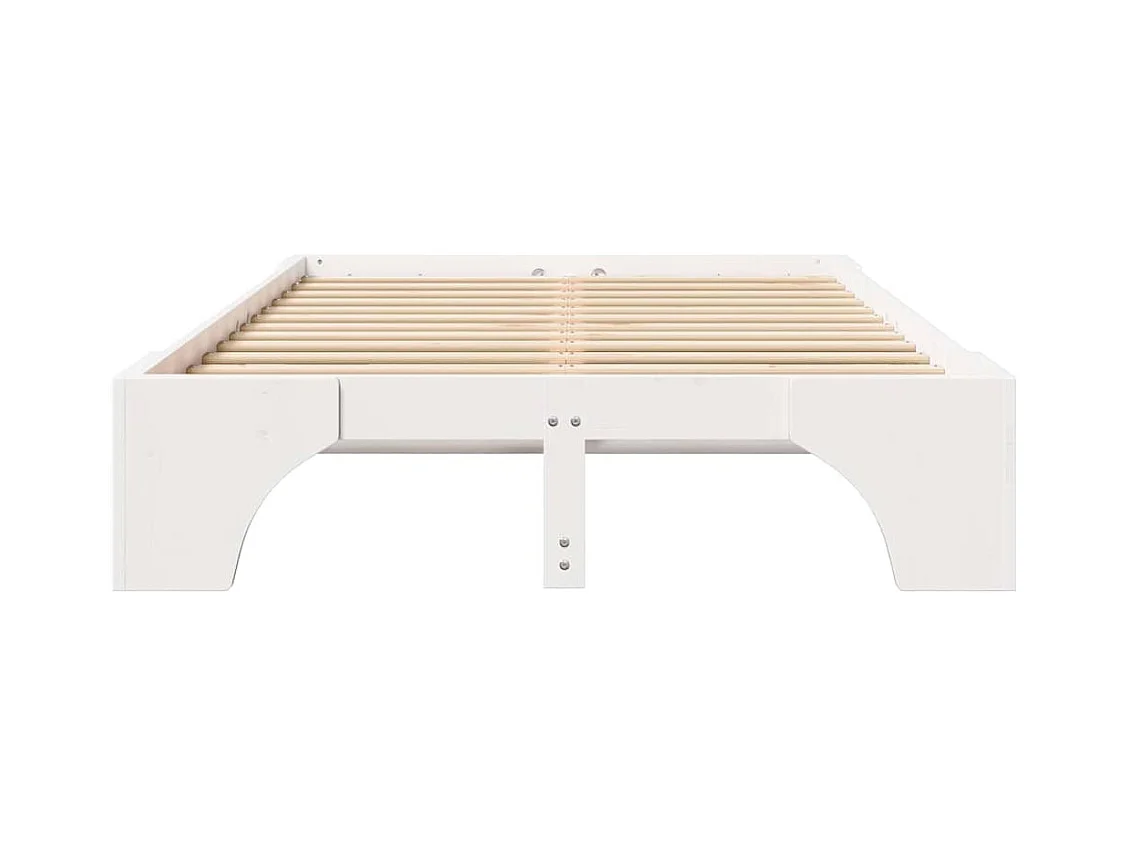 Wit bedframe 135 x 190 cm Massief grenenhout