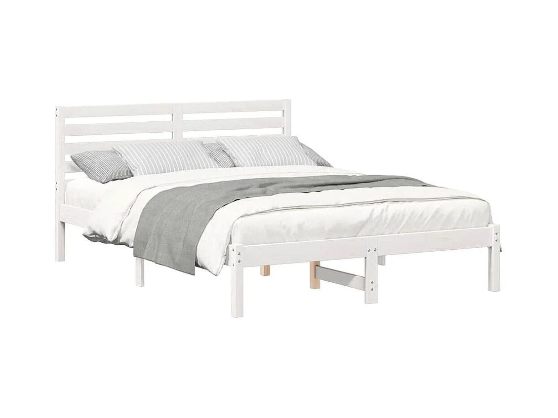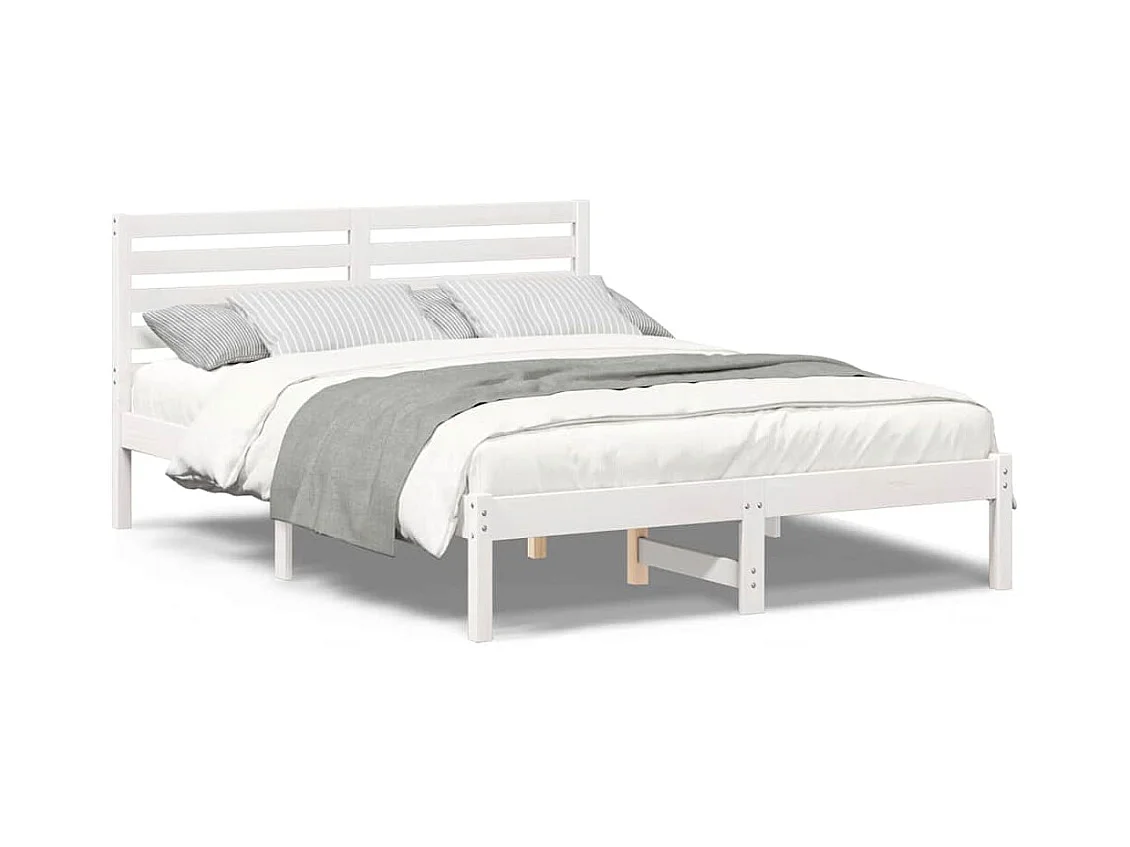 Wit bedframe 140 x 190 cm Massief grenenhout
