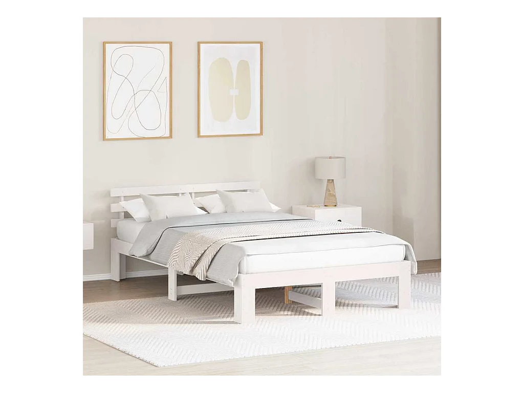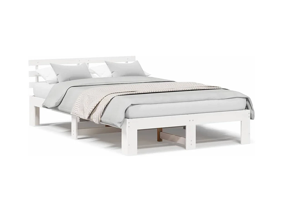 Wit bedframe 140 x 190 cm Massief grenenhout